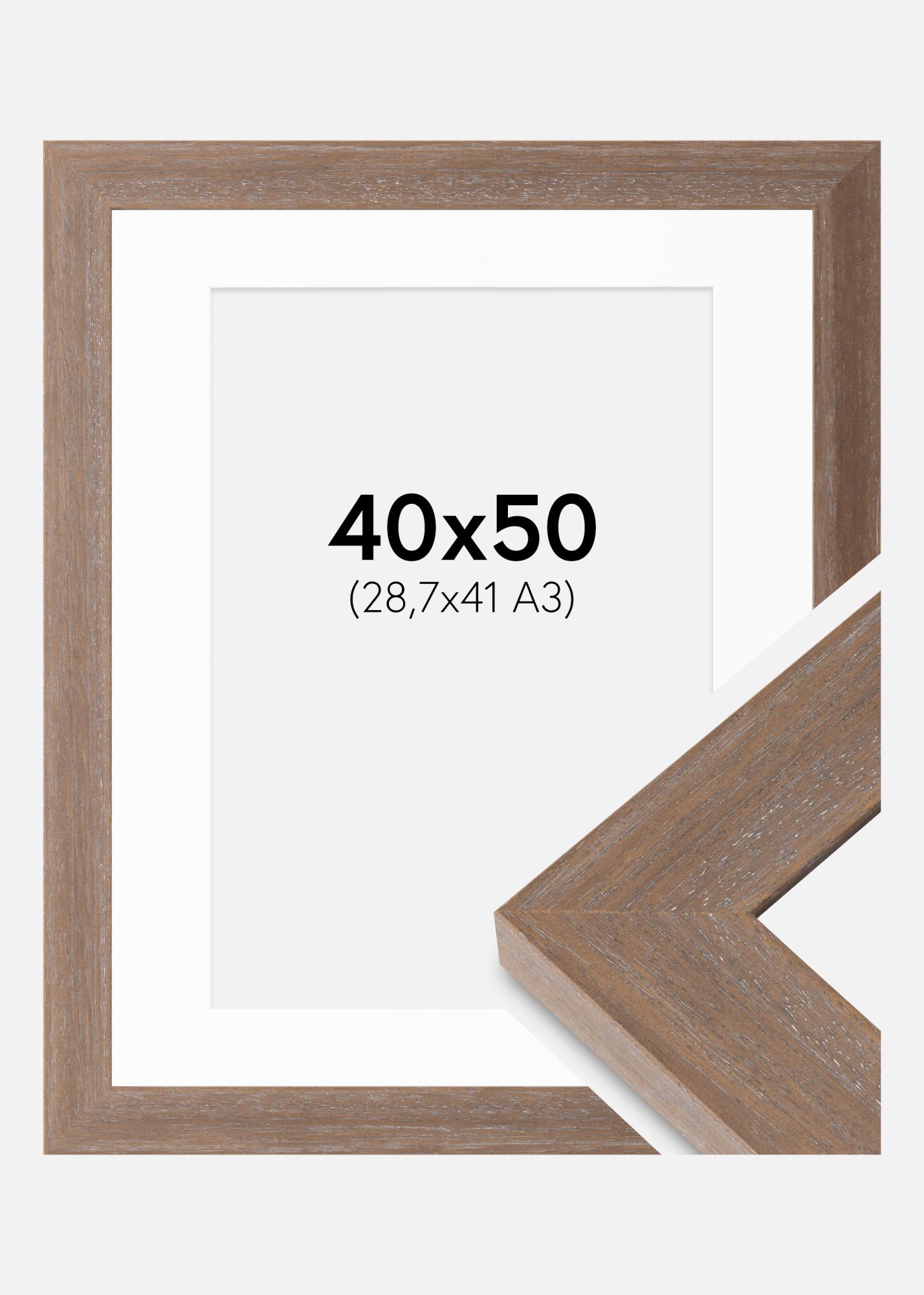 Moldura Juno Cinza 40x50 cm - passe-partout Branco 29,7x42 cm