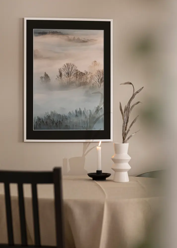 Um passe-partout destaca o motivo e oferece uma moldura elegante, ao mesmo tempo que protege a imagem de ficar em contato direto com o vidro — para um resultado mais bonito e duradouro.