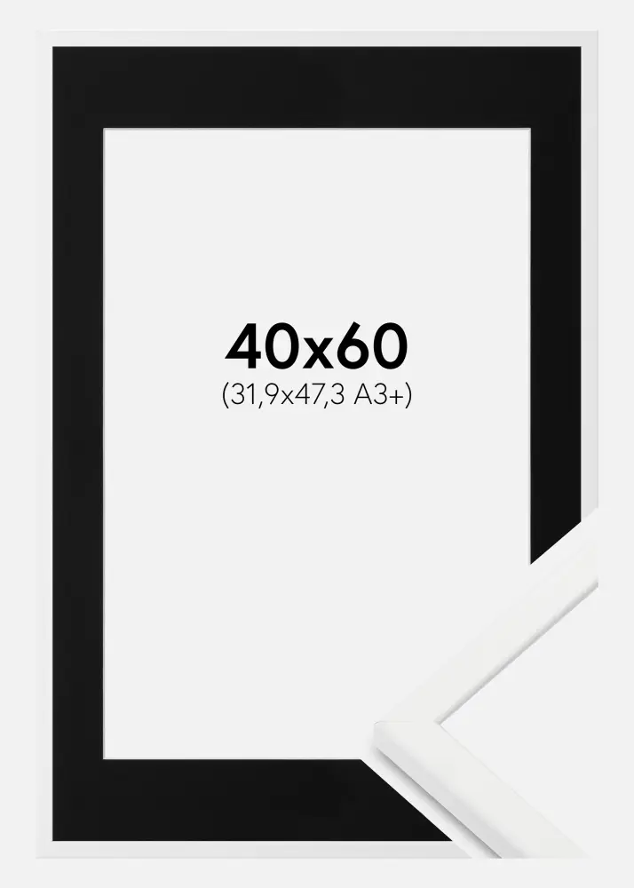 Moldura Kaspar Branco 40x60 cm - Passe-partout Preto 32,9x48,3 cm (A3+)