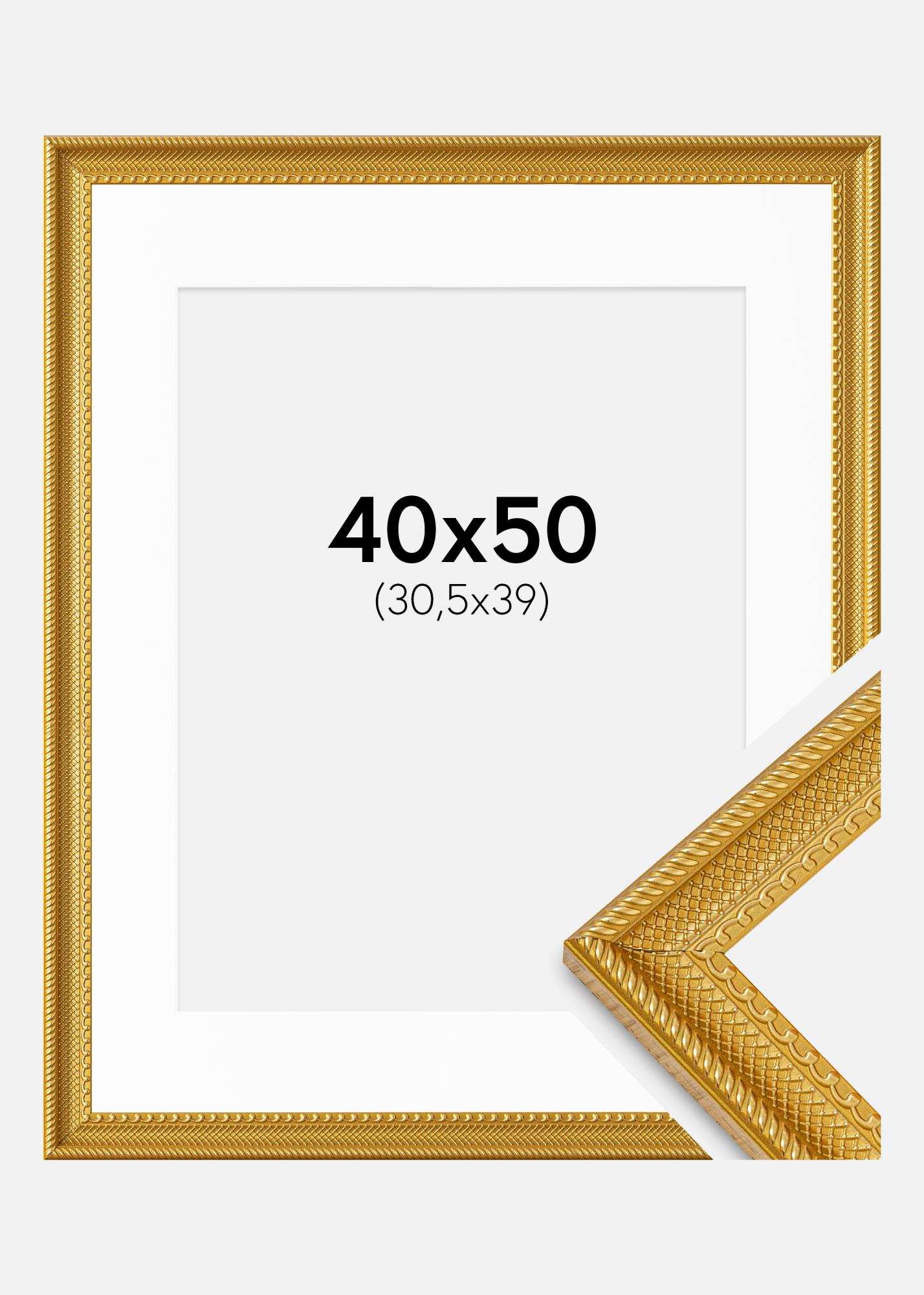 Moldura Lattice Ouro 40x50 cm - passe-partout Branco 31,5x40 cm