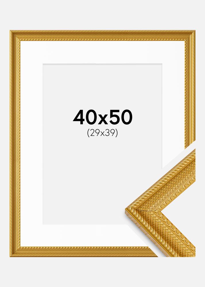 Moldura Lattice Ouro 40x50 cm - passe-partout Branco 30x40 cm