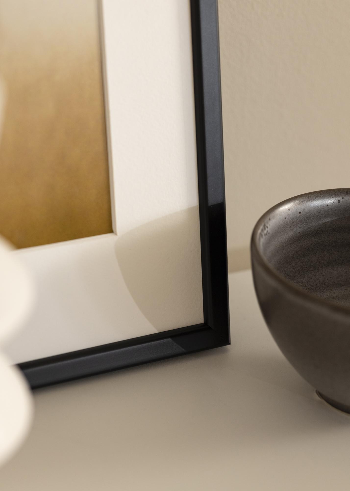 London é uma moldura preta com um design moderno e elegante, com um perfil arredondado. A escolha perfeita quando procura uma moldura estreita em tamanhos mais pequenas que permite que a imagem seja o foco. O vidro e o suporte estão incluídos na moldura.
