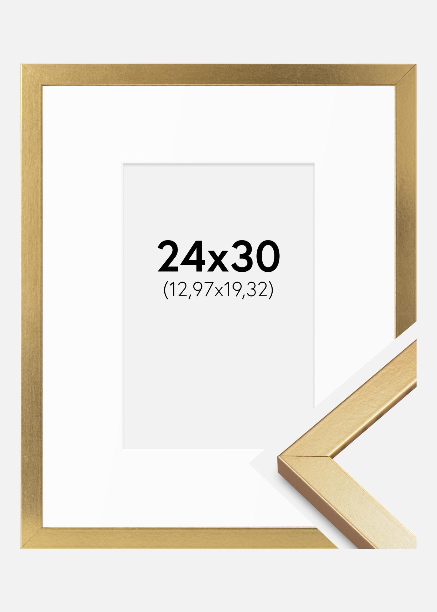 Moldura Minerva Ouro 24x30 cm - passe-partout Branco 5,5x8 inches