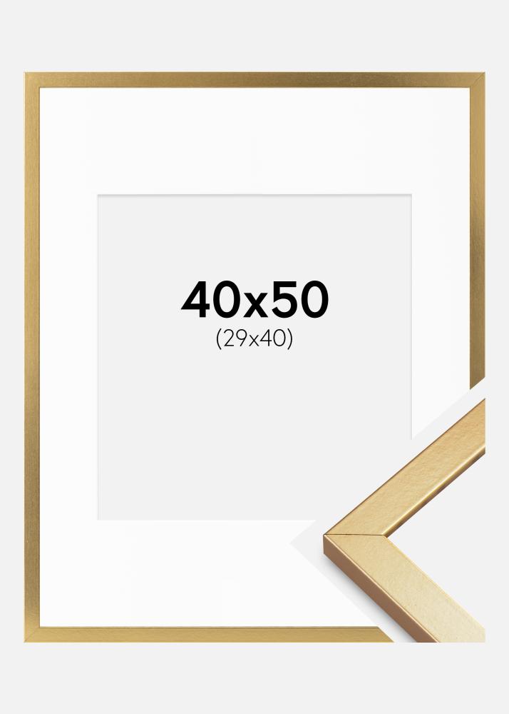 Moldura Minerva Ouro 40x50 cm - passe-partout Branco 30x41 cm