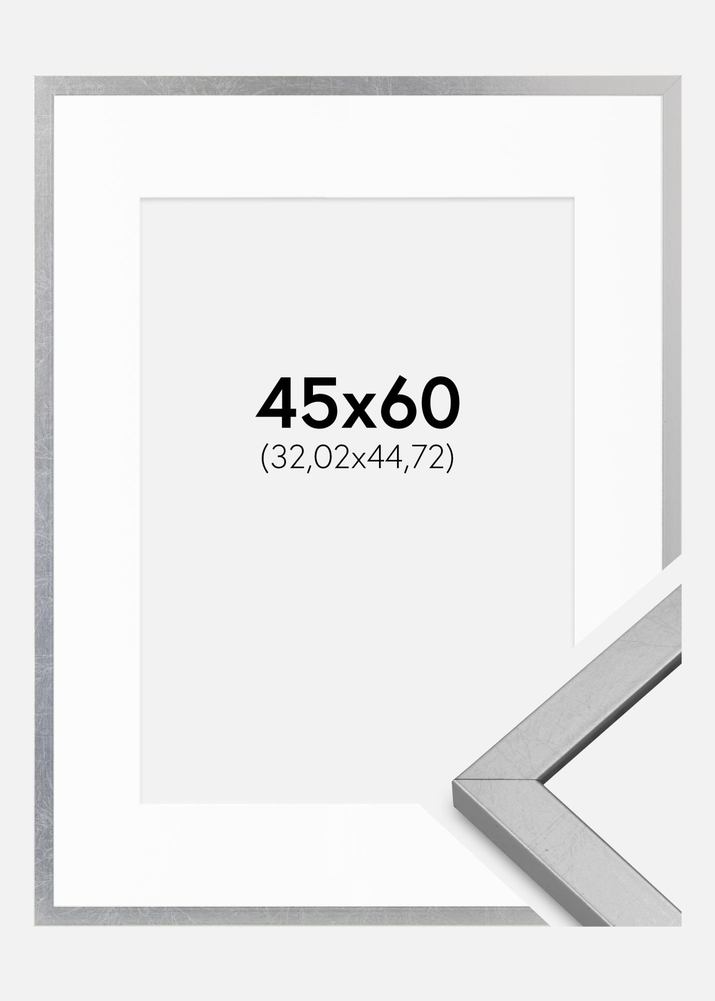 Moldura Minerva Prata 45x60 cm - passe-partout Branco 13x18 inches
