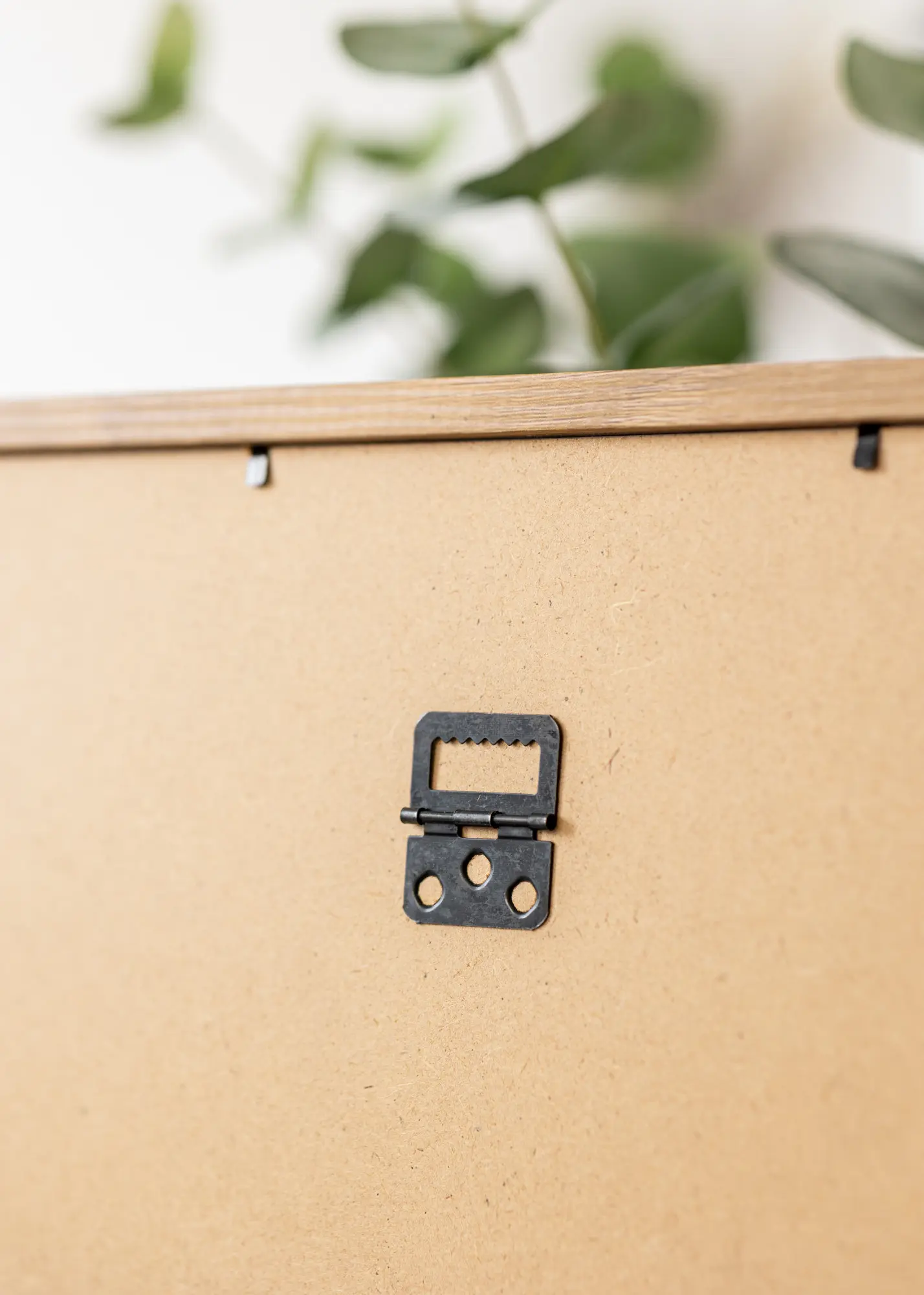 Esta moldura possui um perfil fino e minimalista com uma borda que mede 14 mm de largura e uma profundidade de 15 mm. Isso dá à moldura uma aparência discreta, mas sofisticada, que permite que seu motivo seja o foco principal. A moldura está equipada com penduradores de metal na parte traseira, o que facilita pendurá-la tanto horizontal quanto verticalmente, dependendo do que melhor se adequa ao seu espaço.