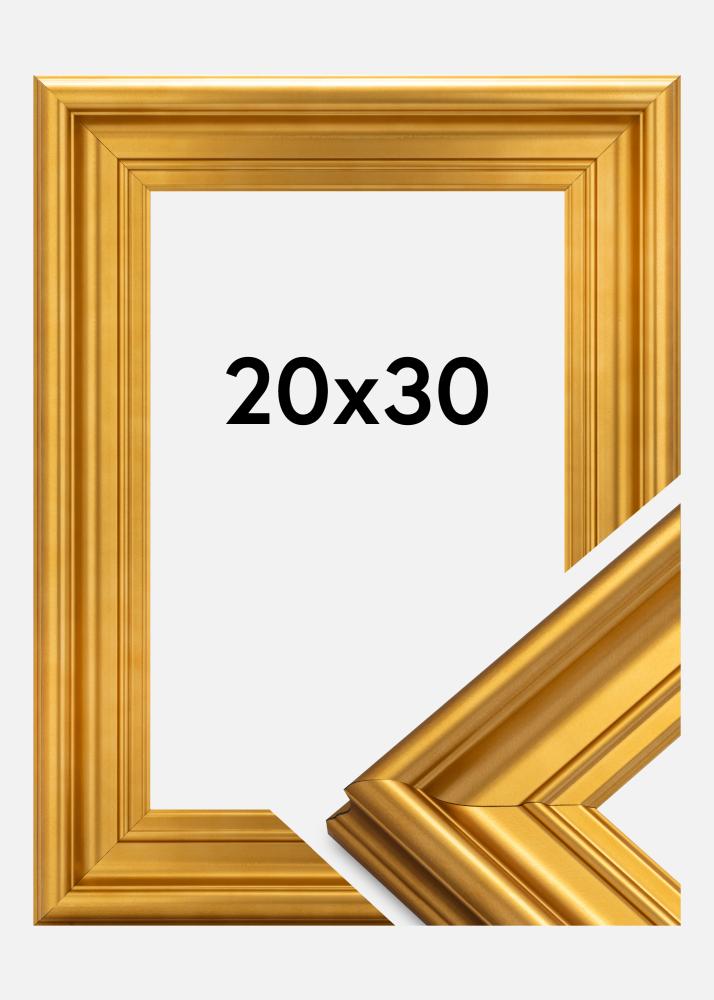 Mora Premium Dourada é uma das nossas molduras de quadros mais finas. Feita de madeira das nossas belas florestas suecas e montada na nossa própria oficina de molduras. Isso nos permite garantir uma qualidade excecional. A moldura tem um perfil suavemente dourado em estilo antigo pintado, com uma largura de impressionantes 57 mm. Perfeito para as suas melhores fotos!