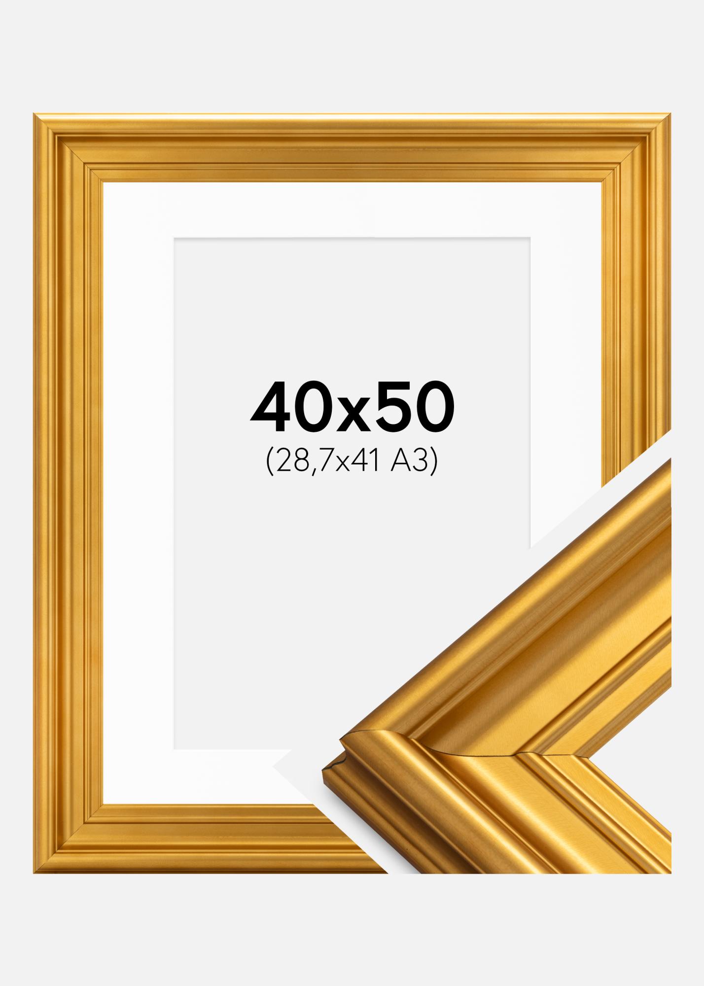 Moldura Mora Premium Dourado 40x50 cm - Passe-partout Branco 29,7x42 cm (A3)