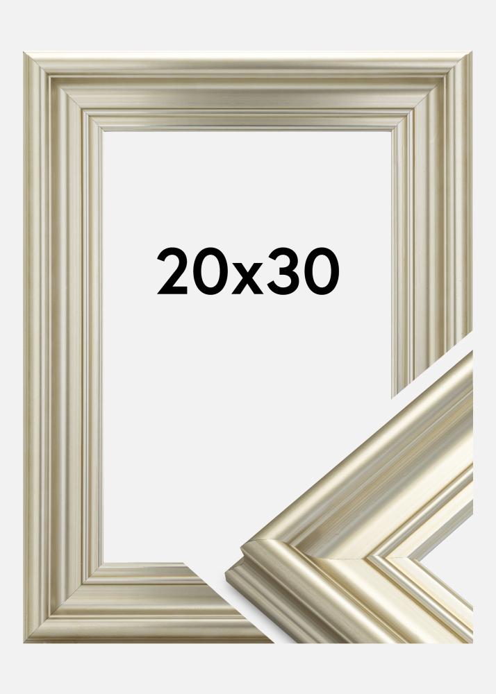 Mora Premium Prateada é uma das nossas molduras de prata mais finas. Feita de madeira das nossas belas florestas suecas e montada na nossa própria oficina de molduras. Isso nos permite garantir uma qualidade excecional. A moldura tem um perfil suavemente prateado em estilo antigo pintado, com uma largura de impressionantes 57 mm. Perfeito para as suas melhores fotos!