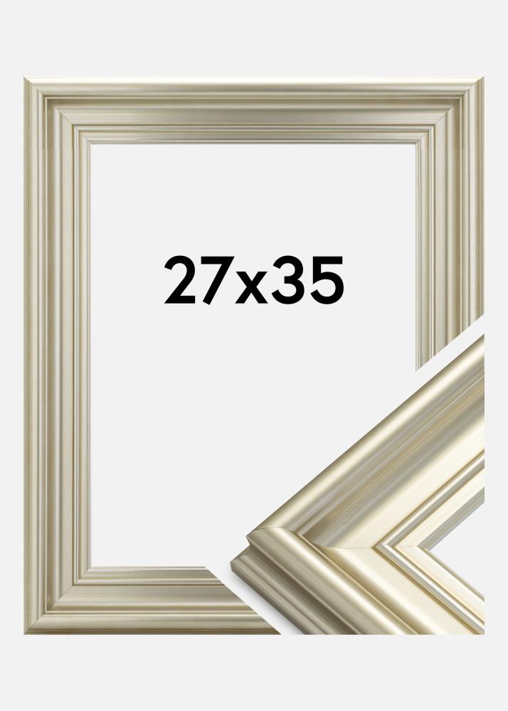 Mora Premium Prateada é uma das nossas molduras de prata mais finas. Feita de madeira das nossas belas florestas suecas e montada na nossa própria oficina de molduras. Isso nos permite garantir uma qualidade excecional. A moldura tem um perfil suavemente prateado em estilo antigo pintado, com uma largura de impressionantes 57 mm. Perfeito para as suas melhores fotos!