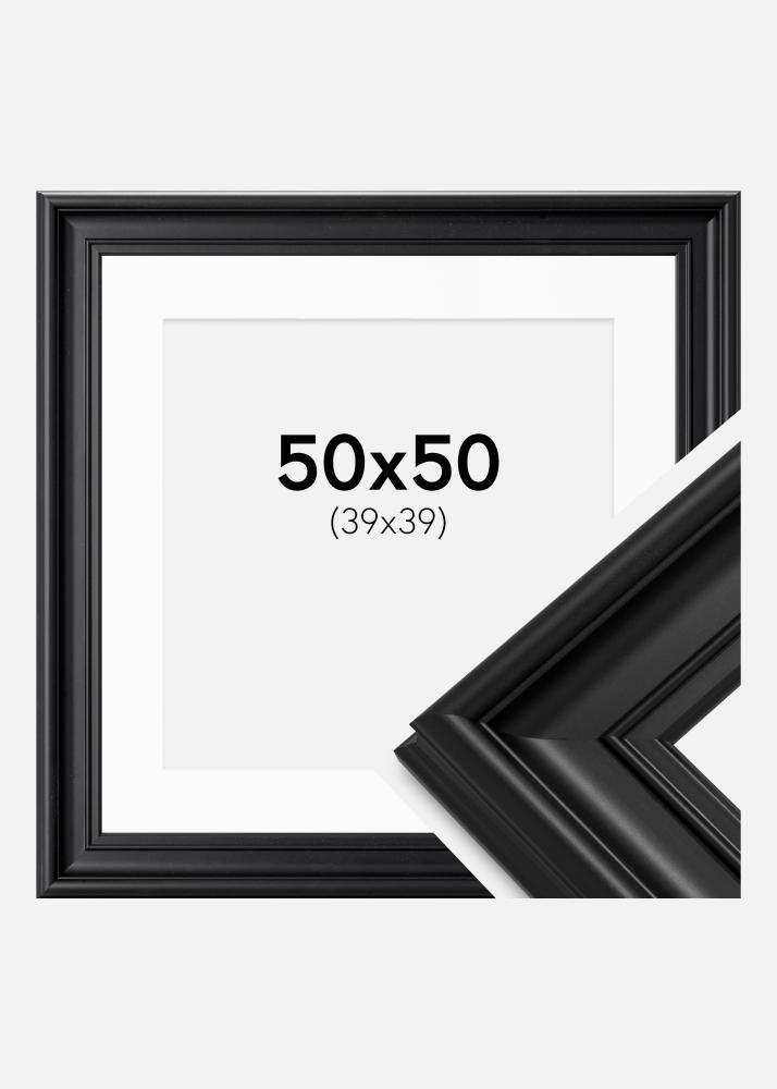 Moldura Mora Premium Preto 50x50 cm - Passe-partout Branco 40x40 cm