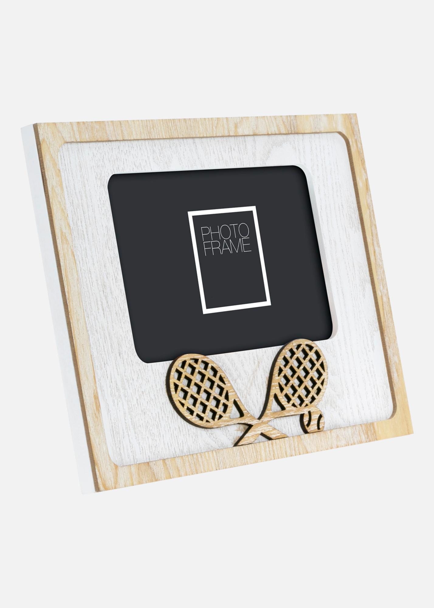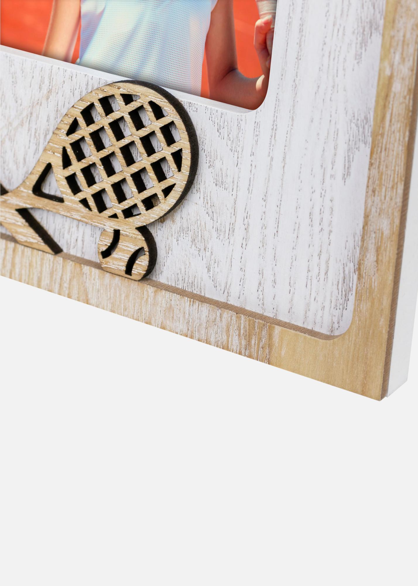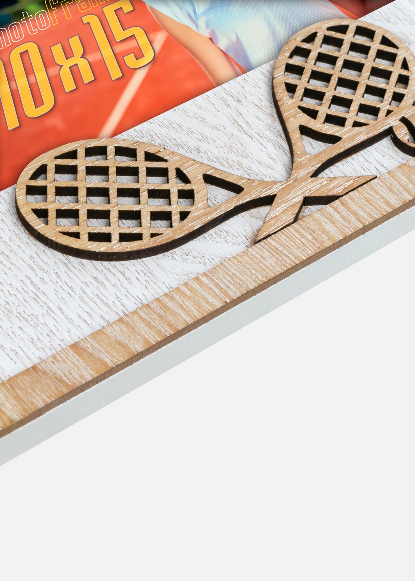 Uma moldura para fotos inspirada no esporte com tema de tênis. Decorada com raquetes de tênis recortadas, perfeita para enquadrar memórias da quadra de tênis ou atividades esportivas. Adequada para tamanho de imagem 10x15 cm.