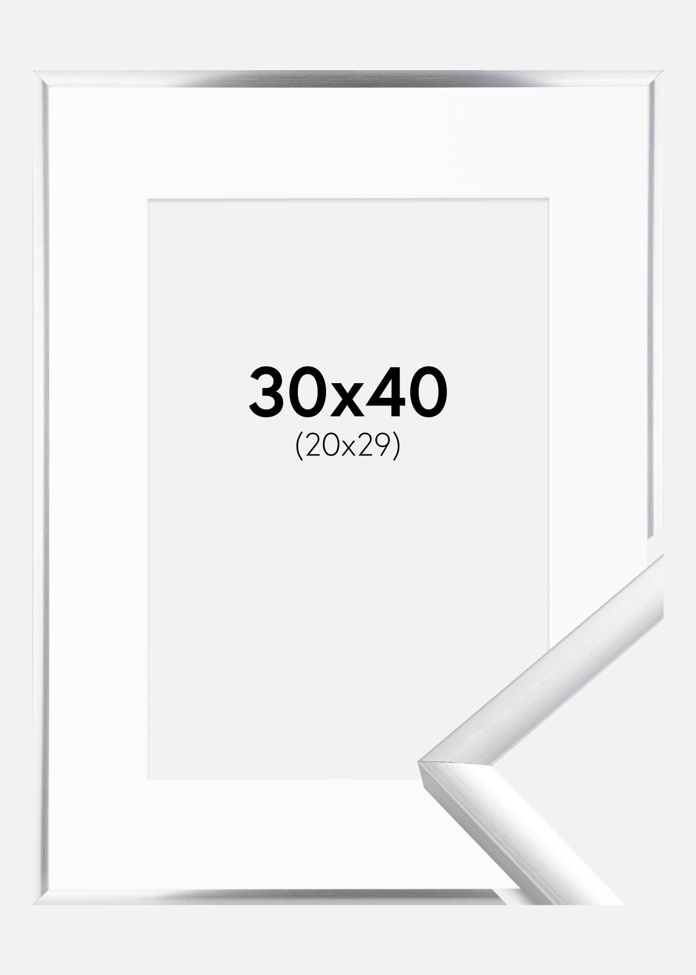 Moldura New Lifestyle Prateado 30x40 cm - Passe-partout Branco 21x30 cm