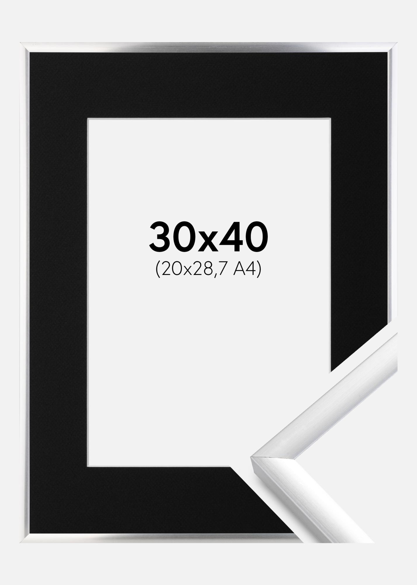 Moldura New Lifestyle Prateado 30x40 cm - Passe-partout Preto 21x29,7 cm (A4)