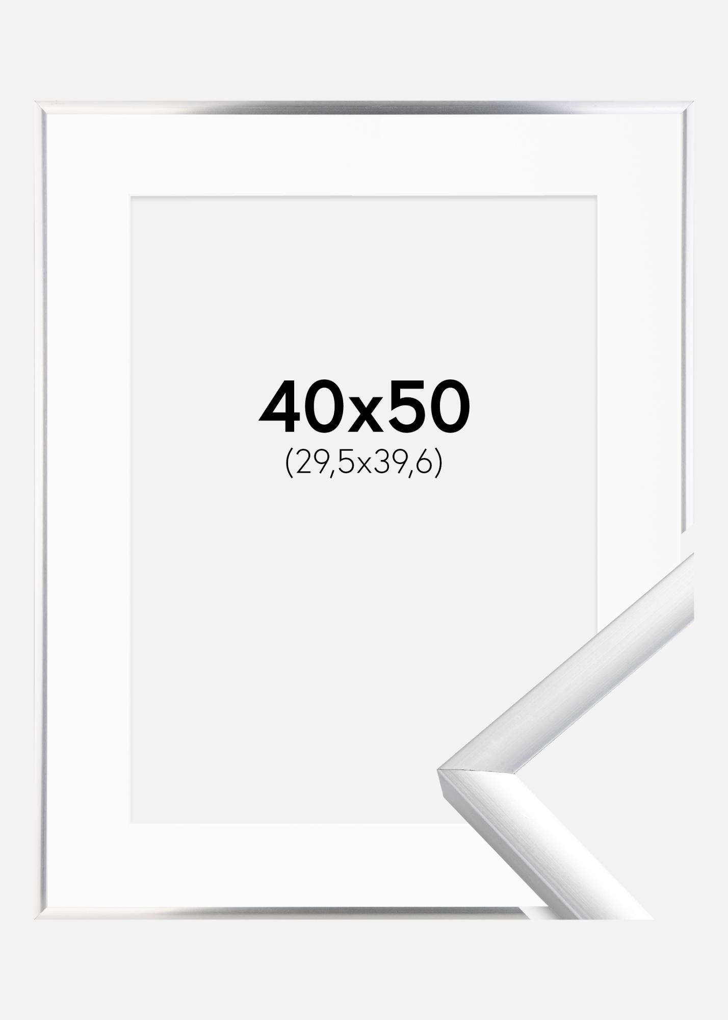 Moldura New Lifestyle Prateado 40x50 cm - Passe-partout Branco 12x16 inches