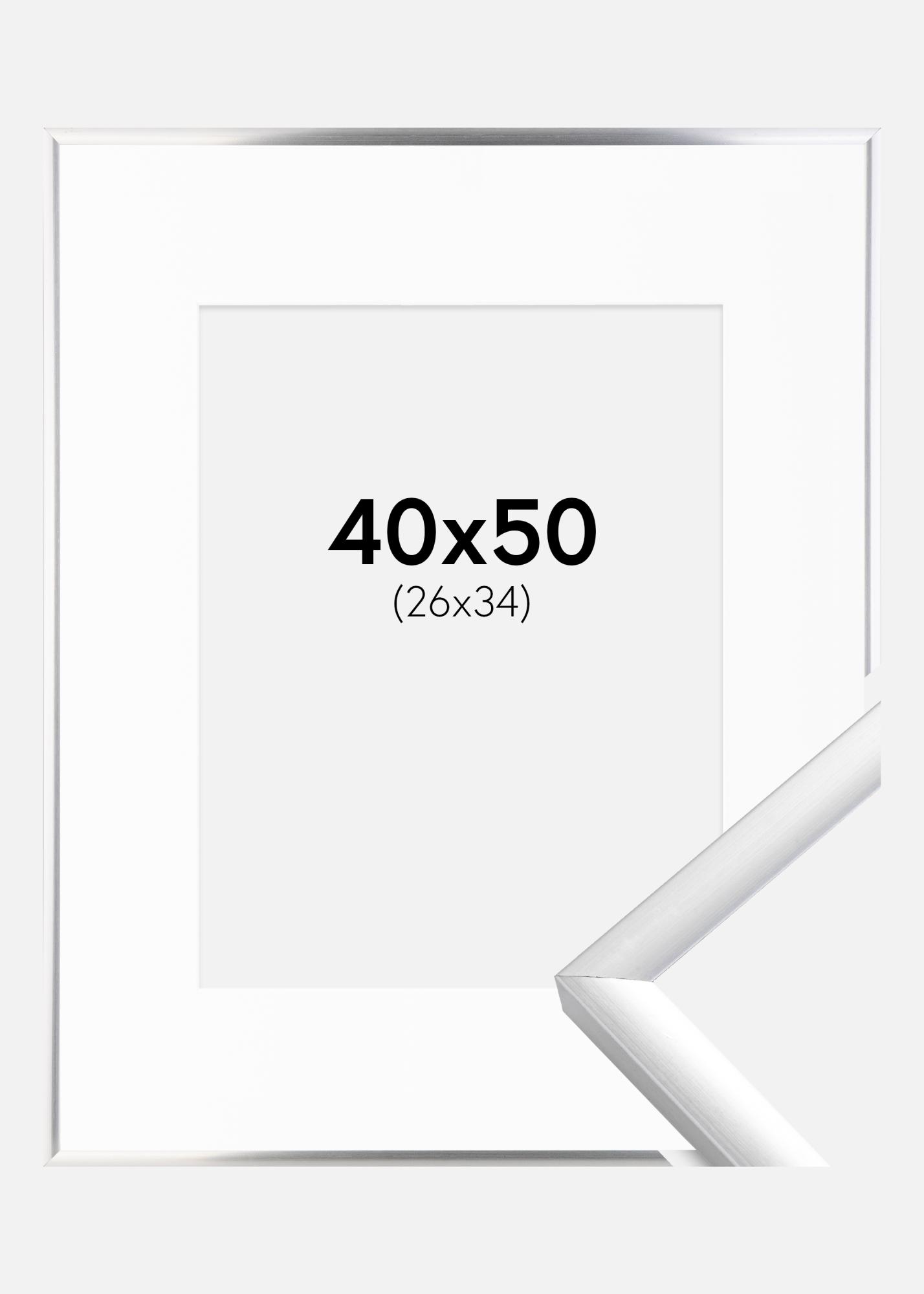 Moldura New Lifestyle Prateado 40x50 cm - Passe-partout Branco 27x35 cm