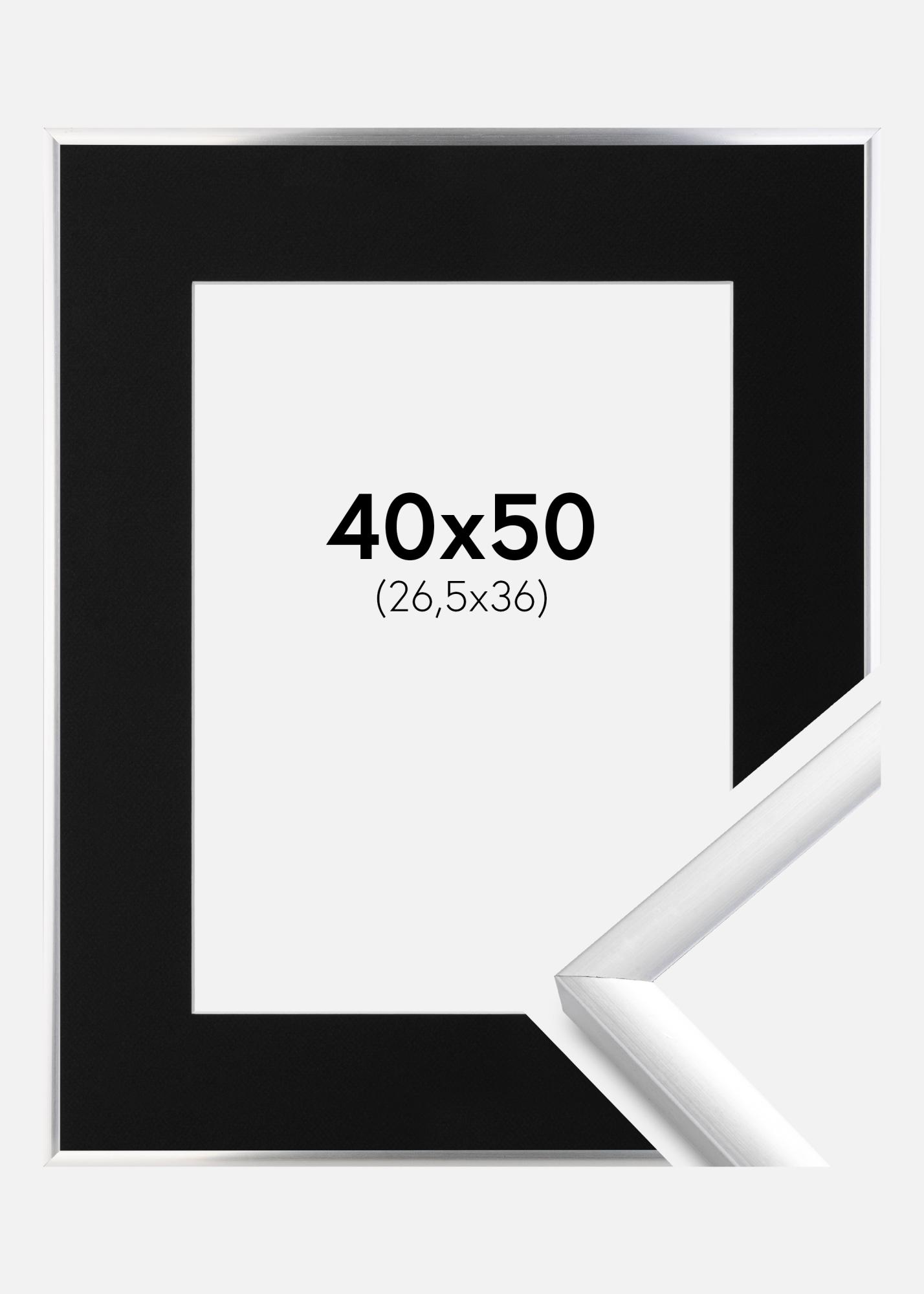 Moldura New Lifestyle Prateado 40x50 cm - Passe-partout Preto 27,5x37 cm