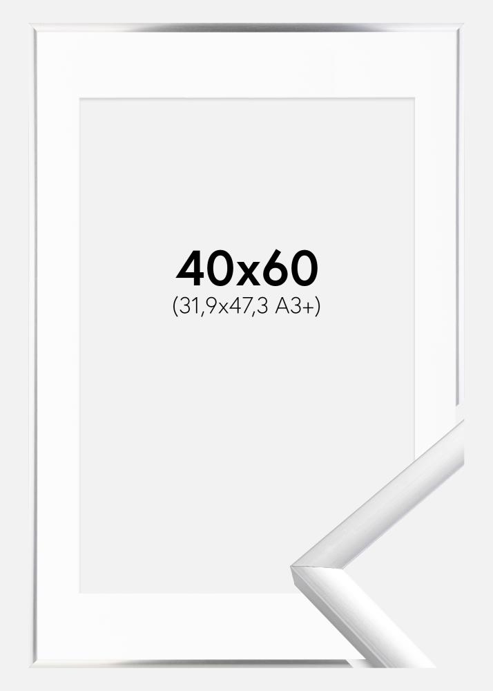 Moldura New Lifestyle Prateado 40x60 cm - Passe-partout Branco 32,9x48,3 cm
