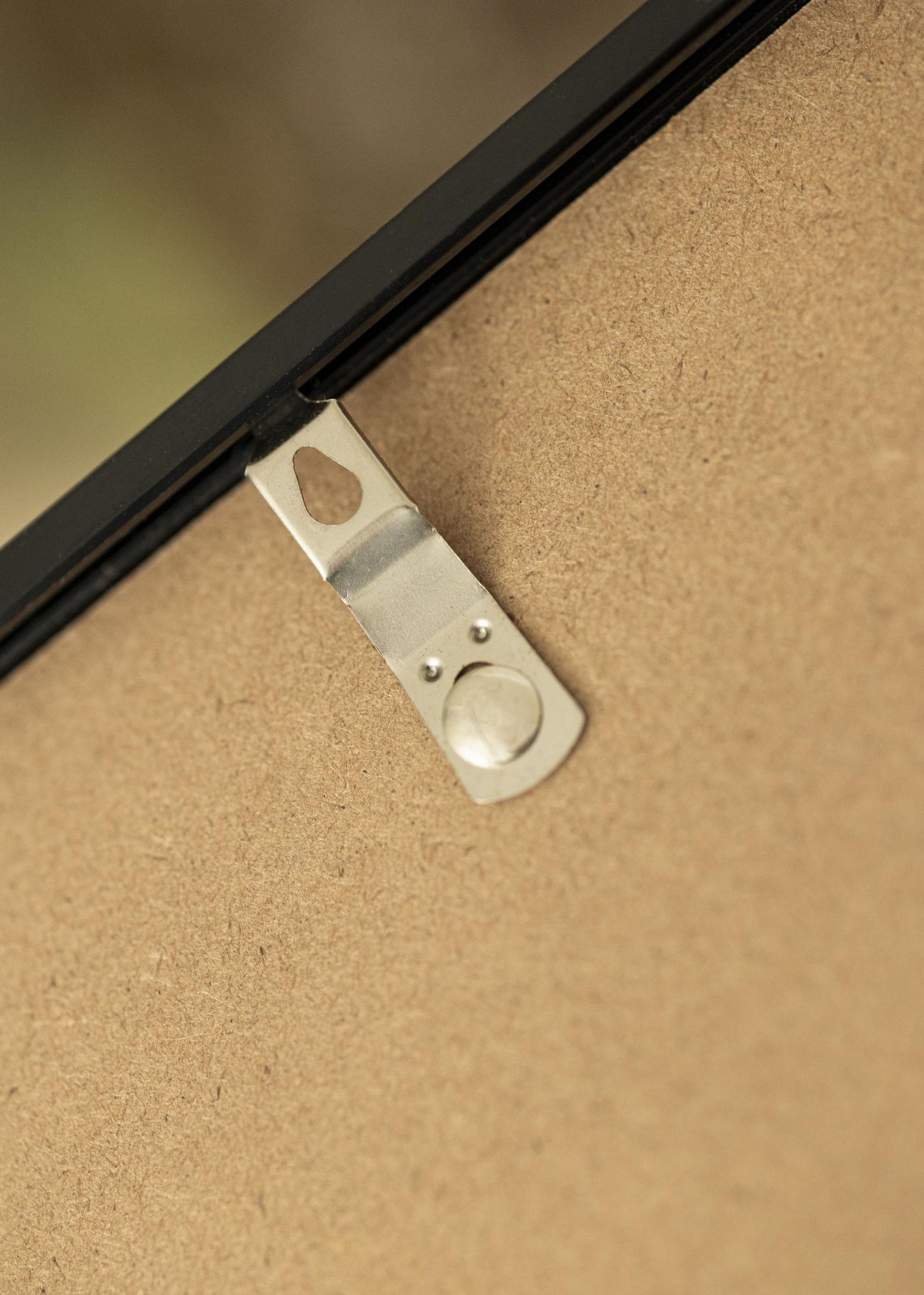 Embalagem onde vem a moldura e o passe-partout branco. Na imagem pode observar a parte de trás da moldura (indicado a negrito) e a parte onde assenta o passe-partout (indicado entre parênteses). Note que a parte onde assenta o passe-partout tem de ser sempre 1cm mais pequena que o tamanho da imagem desejada.