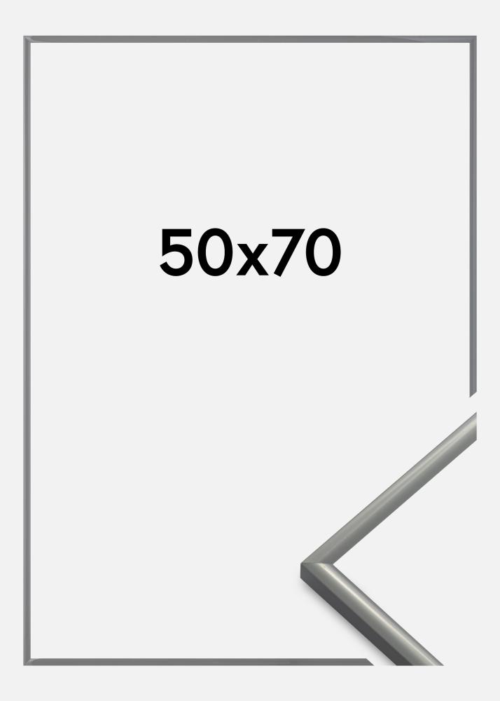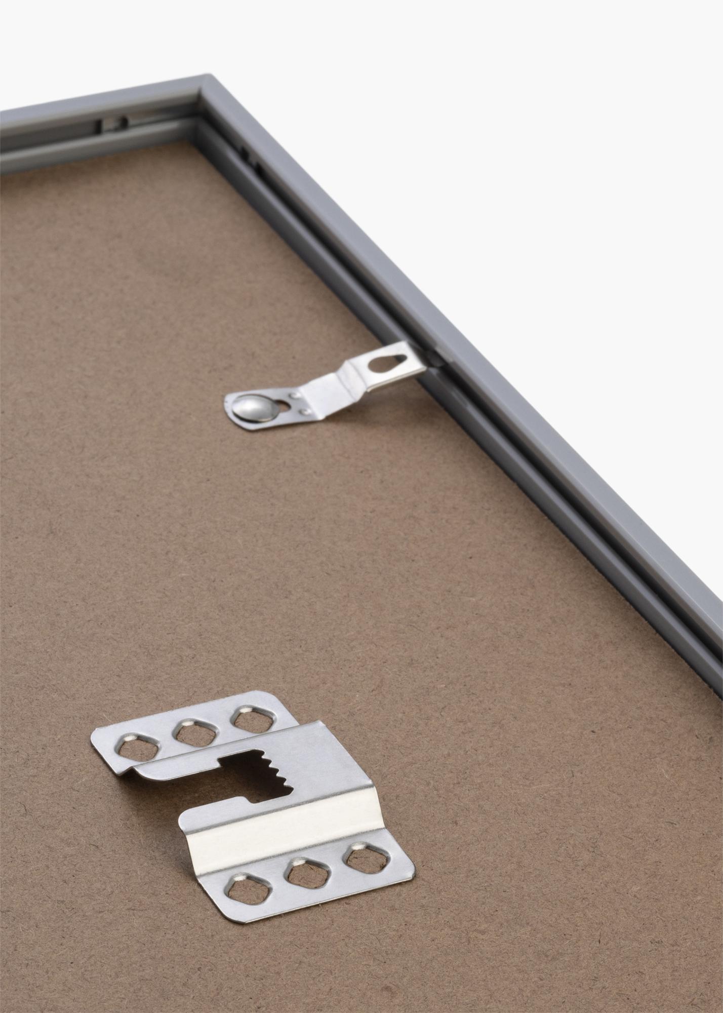 A moldura tem uma borda estreita com apenas 9,8 mm de largura e um perfil levemente arredondado. A borda estreita dá à moldura uma aparência elegante. Esta moldura de foto também possui vidro acrílico, que é um vidro inquebrável e leve. Graças ao seu peso leve, molduras com tamanho de até 50x70 cm também podem ser penduradas com ganchos adesivos para quadros.