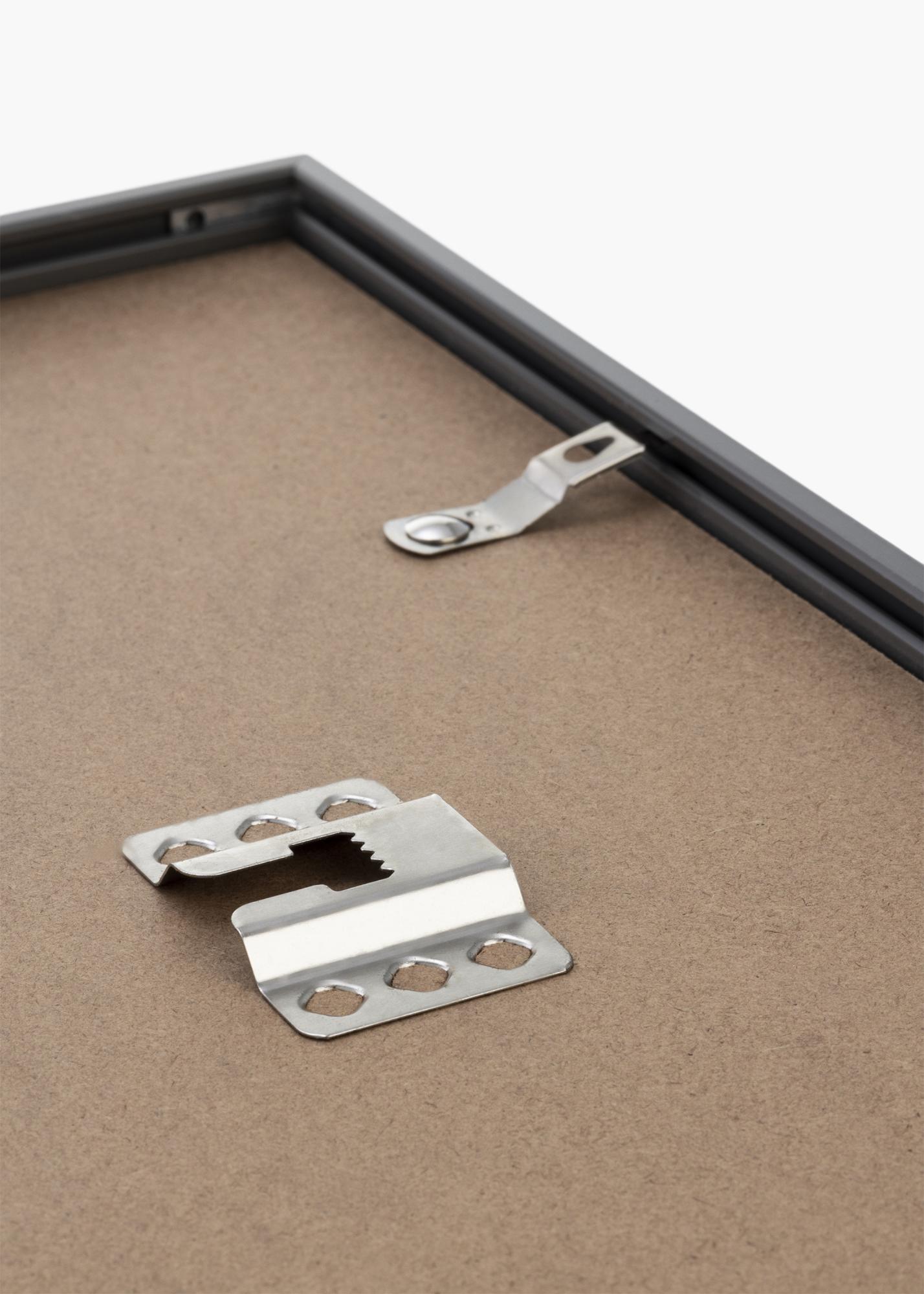 O Novo Estilo de Moldura em Acrílico cinzento Escuro é uma moldura moderna que realmente destaca suas imagens. A sofisticada cor cinzento escura, juntamente com a fina moldura de apenas 9,8 mm, faz com que esta moldura proporcione um emolduramento incrivelmente elegante para todas as suas fotos. Seja para emoldurar fotos em preto e branco ou coloridas, esta moldura será um excelente complemento. Pode facilmente colocar as suas imagens na moldura sem precisar de ferramentas, graças aos clipes de metal giratórios que seguram a parte traseira da moldura.