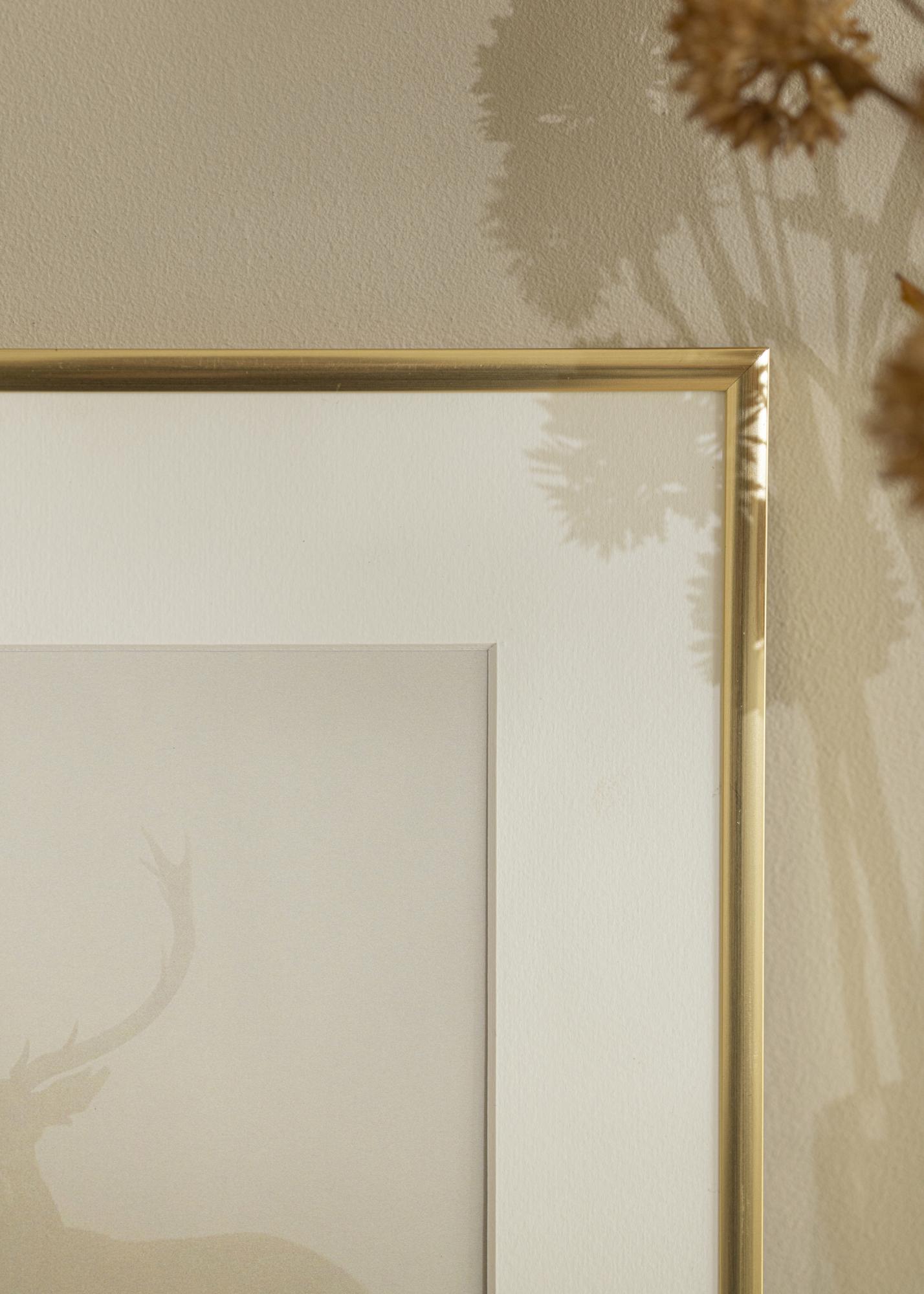 Uma moldura dourada com uma superfície brilhante é uma escolha moderna que se adequa tanto ao quarto das crianças quanto à galeria de parede elegante na sala de estar. O New Lifestyle Acrílico Shiny Gold possui uma moldura fina com perfil levemente arredondado, o que confere um toque luxuoso de ouro às suas imagens, ao mesmo tempo em que mantém o foco principal nelas. A moldura possui um painel traseiro em MDF, que é mantido no lugar por pequenos clipes de metal. Para inserir suas imagens, basta girar os clipes, soltar o painel traseiro e colocar sua imagem na moldura.