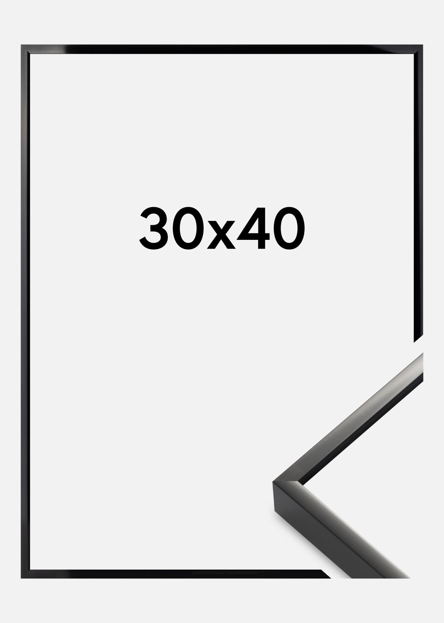 Elegante moldura premium com uma fina e brilhante moldura preta que encaixa-se perfeitamente num interior moderno e elegante. A superfície da moldura e a sensação minimalista do design esbelto a tornam ideal para uso com pósteres gráficos e fotografias em preto e branco. A moldura é feita de alumínio e está disponível em muitos tamanhos diferentes, o que a torna uma ótima opção ao criar uma galeria de parede com imagens em vários formatos diferentes, mantidas juntas pela escolha da moldura.