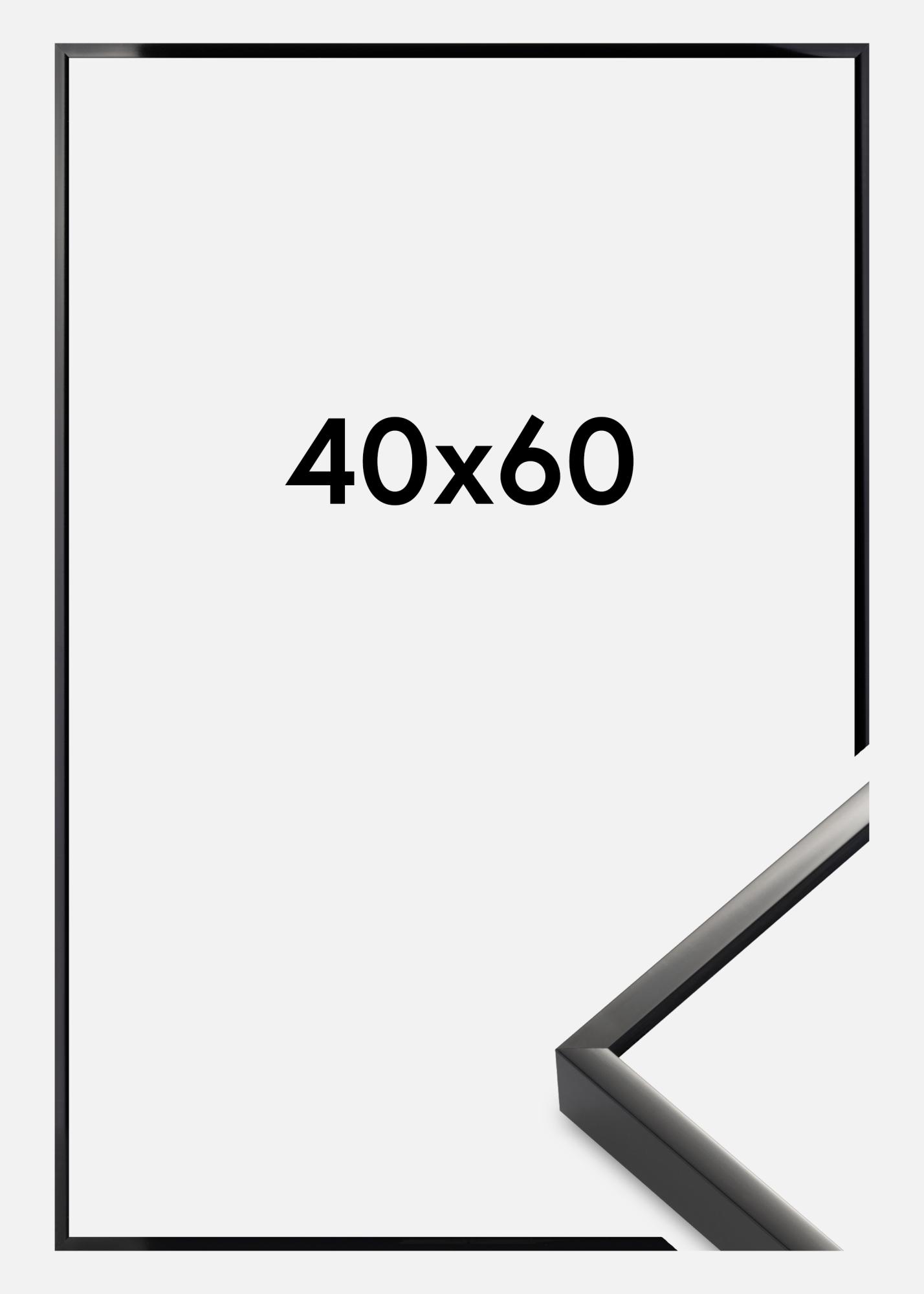 Elegante moldura premium com uma fina e brilhante moldura preta que encaixa-se perfeitamente num interior moderno e elegante. A superfície da moldura e a sensação minimalista do design esbelto a tornam ideal para uso com pósteres gráficos e fotografias em preto e branco. A moldura é feita de alumínio e está disponível em muitos tamanhos diferentes, o que a torna uma ótima opção ao criar uma galeria de parede com imagens em vários formatos diferentes, mantidas juntas pela escolha da moldura.
