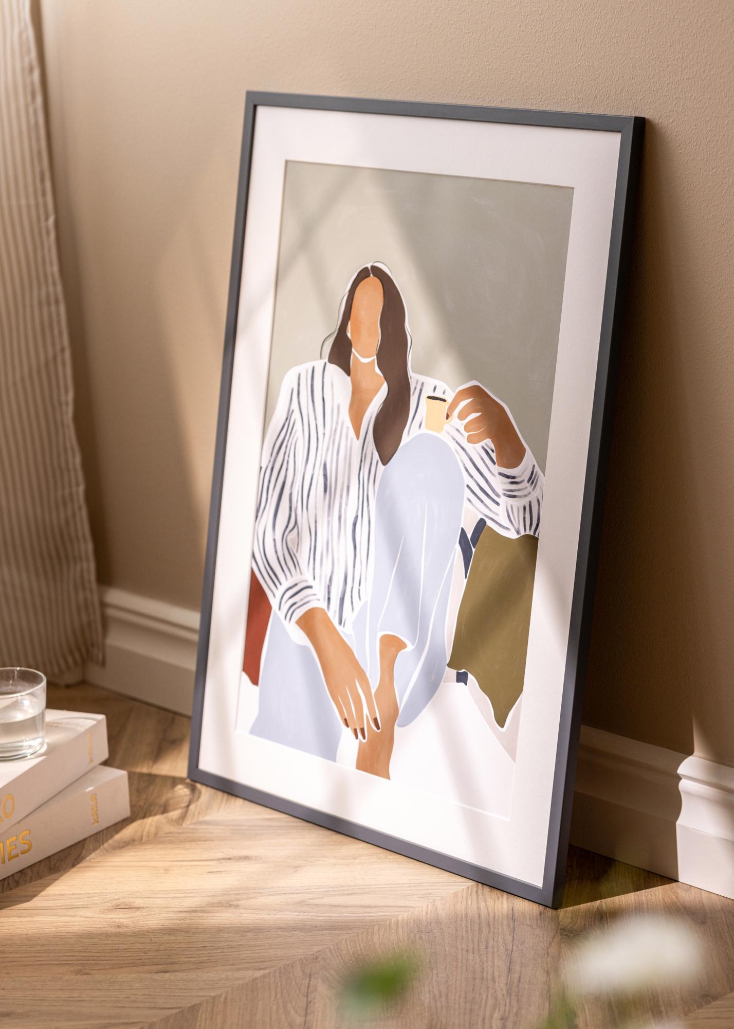 Uma elegante moldura de madeira da marca dinamarquesa Incado, pertencente à série NordicLine. A moldura possui um perfil quadrado e elegante, com uma largura de moldura de 15 mm e uma profundidade de moldura também de 15 mm. A moldura possui uma superfície folheada em um elegante tom de cinzento escuro que harmoniza facilmente com outros esquemas de cores em sua casa.