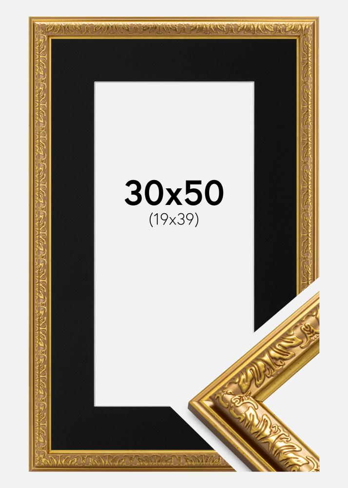 Moldura Nostalgia Dourado 30x50 cm - Passe-partout Preto 20x40 cm