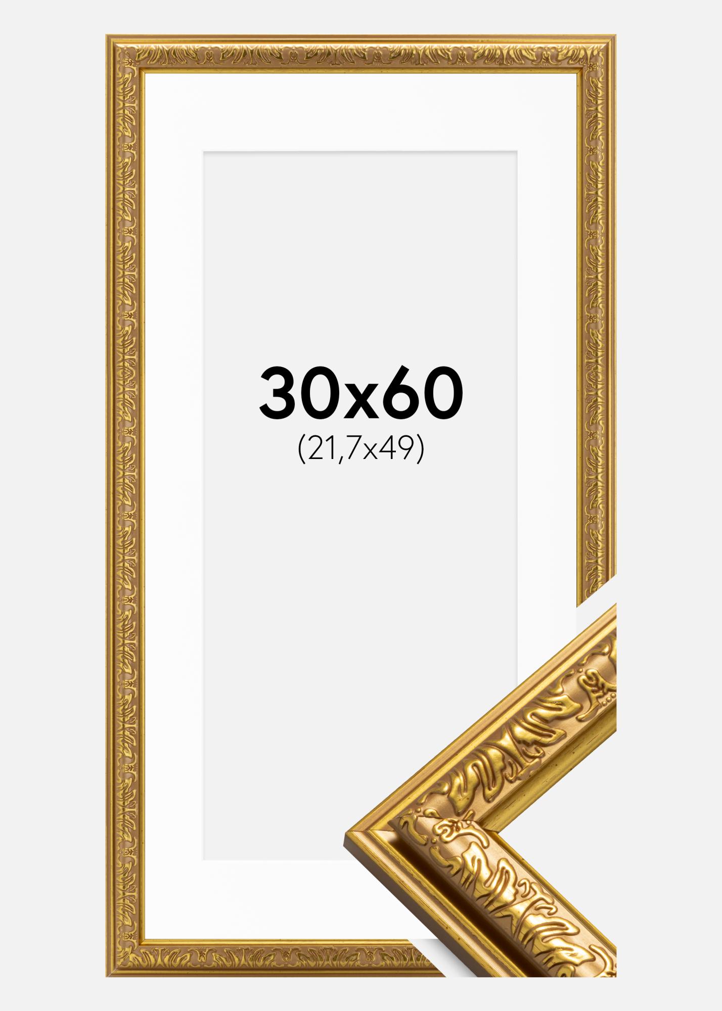 Moldura Nostalgia Dourado 30x60 cm - Passe-partout Branco 22,7x50 cm