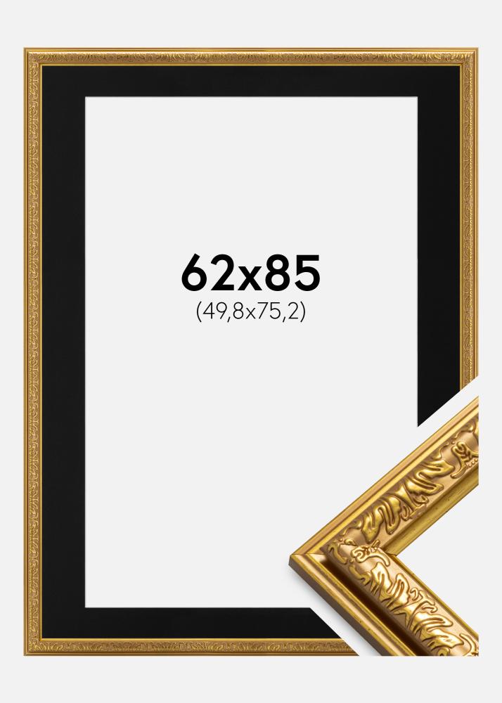 Moldura Nostalgia Dourado 62x85 cm - Passe-partout Preto 20x30 inches
