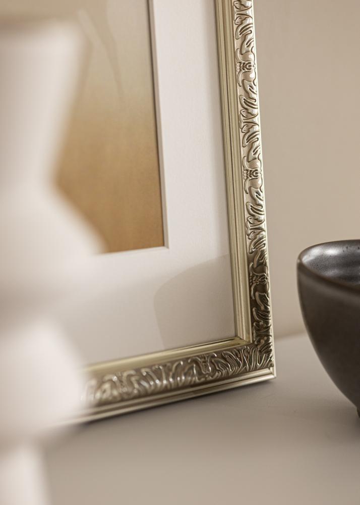 Nostalgia é uma elegante moldura prateada em estilo retro com belos enfeites. Perfeita quando procura uma moldura retro ampla para as suas melhores fotos.
