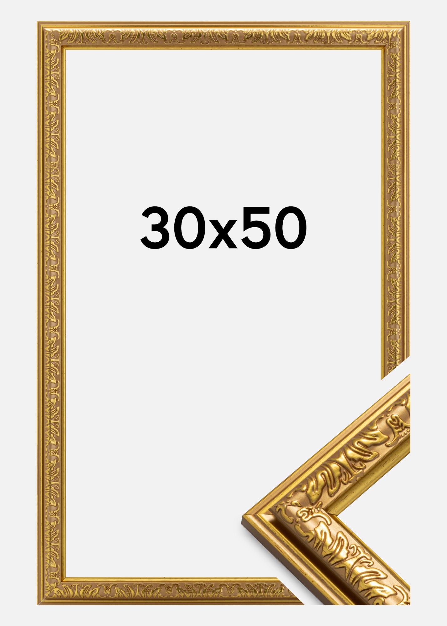 Esta é uma elegante moldura dourada decorada com ornamentos decorativos em estilo retro. A moldura tem muito caráter e se torna um belo detalhe de decoração na sua parede, ao mesmo tempo em que não tira o foco do seu motivo. Na parte de trás da moldura, há um suporte de parede que permite que a monte tanto na vertical quanto na horizontal.