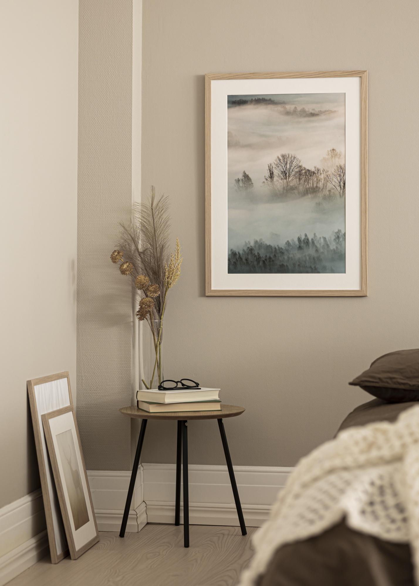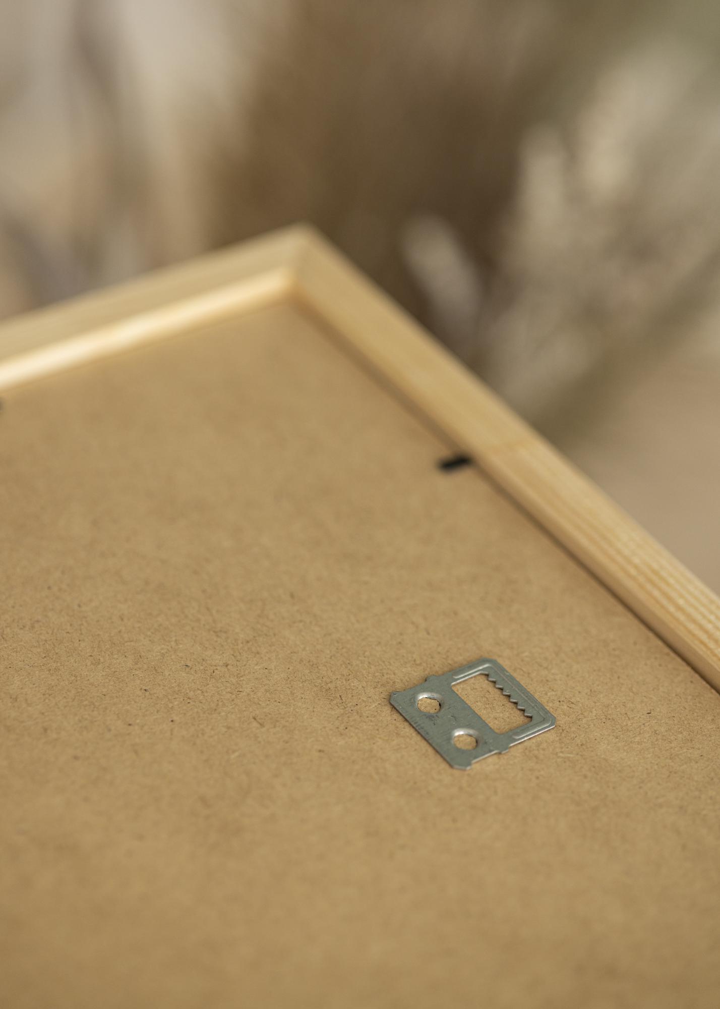 A moldura é fabricada na Suécia e possui uma moldura de 22 mm de largura com acabamento mate. Na parte de trás, encontrará suportes de parede para pendurar horizontal e verticalmente, além de pinos dobráveis que seguram a placa traseira da moldura. Para inserir sua imagem, basta dobrar os pinos, soltar a parte de trás e colocar sua imagem mais próxima do vidro. Rápido, fácil e sem a necessidade de ferramentas!