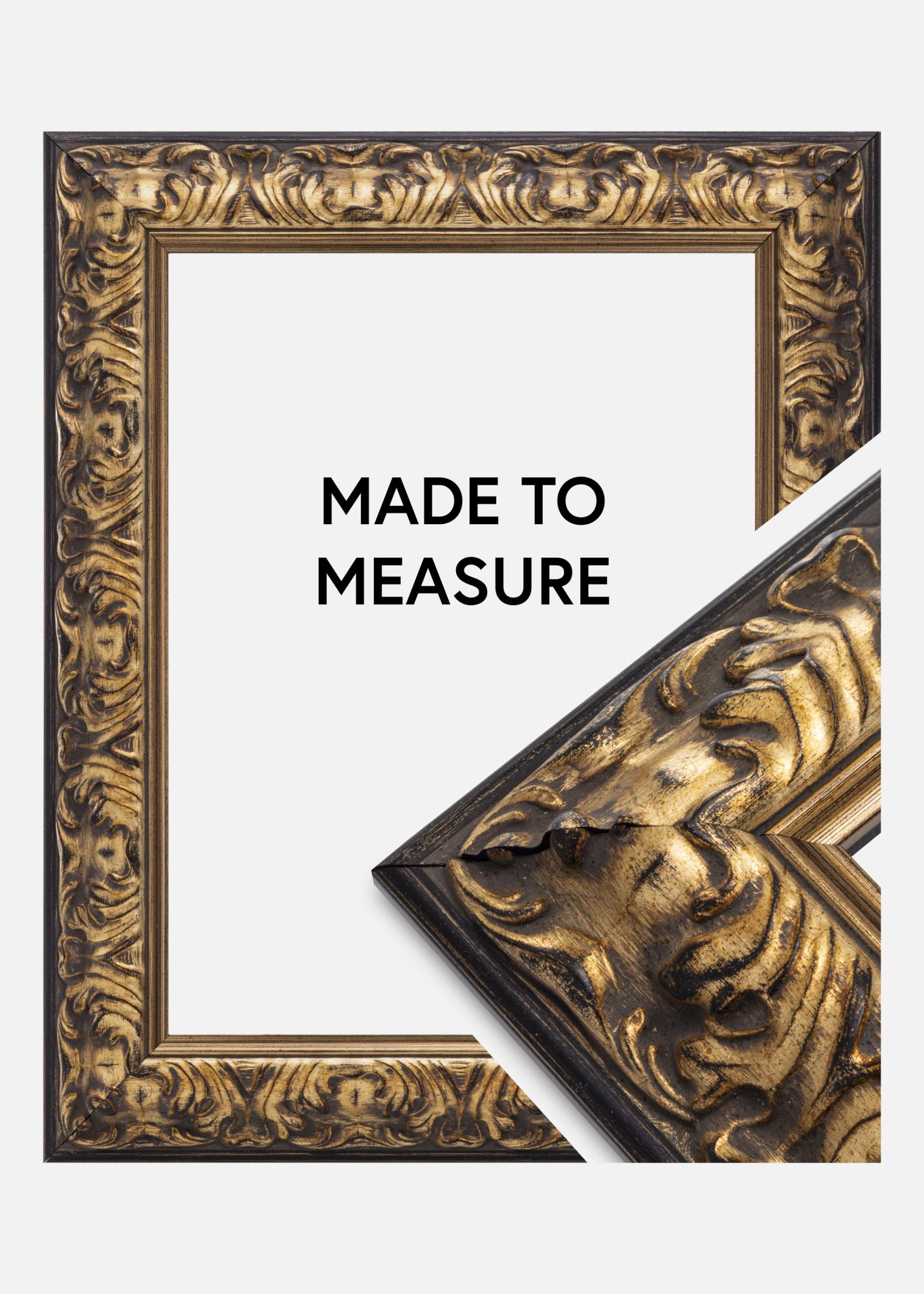 Nosso quadro feito sob medida Odin em ouro e preto é a escolha perfeita para você que busca uma moldura elegante e clássica. Com seu acabamento dourado e detalhes pretos, esta moldura oferece uma sensação antiga que realça qualquer obra de arte ou fotografia. O design ornamentado cria um belo contraste entre o dourado quente e os detalhes pretos profundos, proporcionando uma aparência elegante e tradicional.