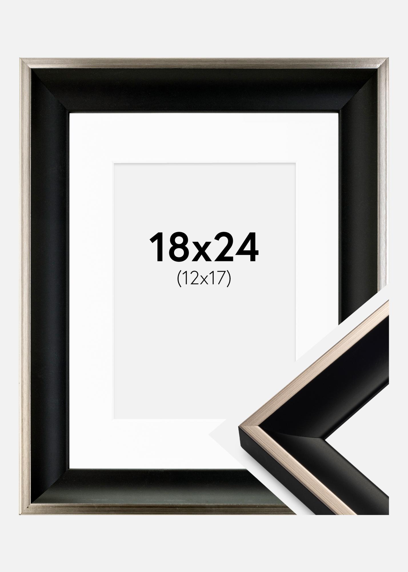 Moldura Öjaren Preto-Prateado 18x24 cm - Passe-partout Branco 13x18 cm