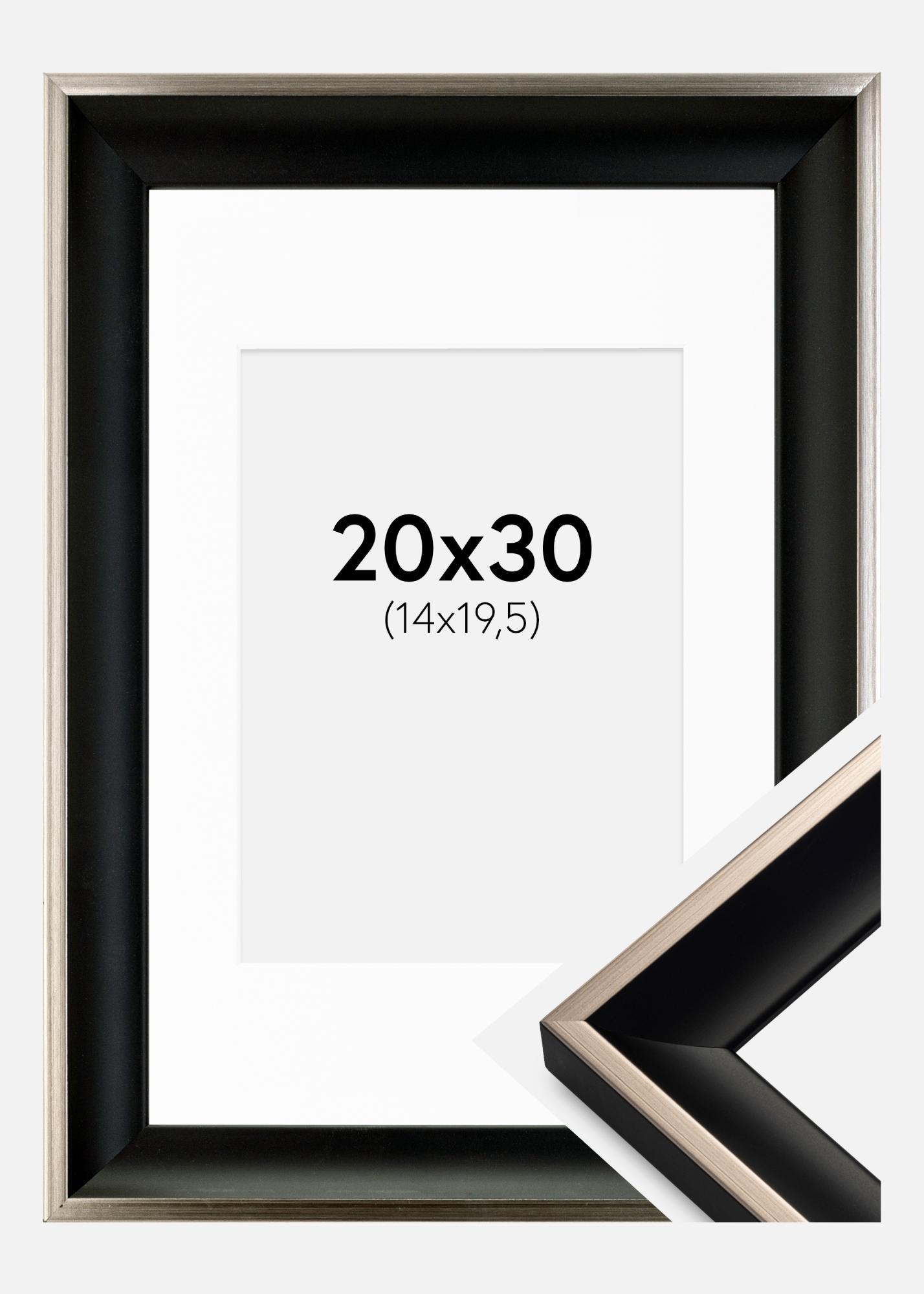 Moldura Öjaren Preto-Prateado 20x30 cm - Passe-partout Branco 15x21 cm (A5)