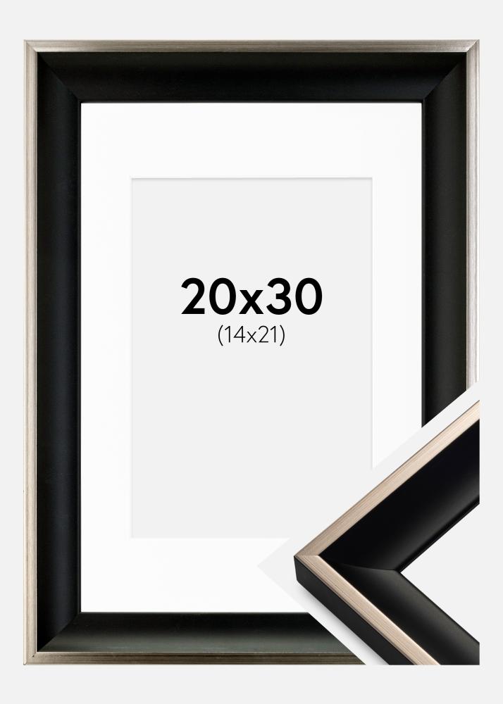 Moldura Öjaren Preto-Prateado 20x30 cm - Passe-partout Branco 15x22 cm