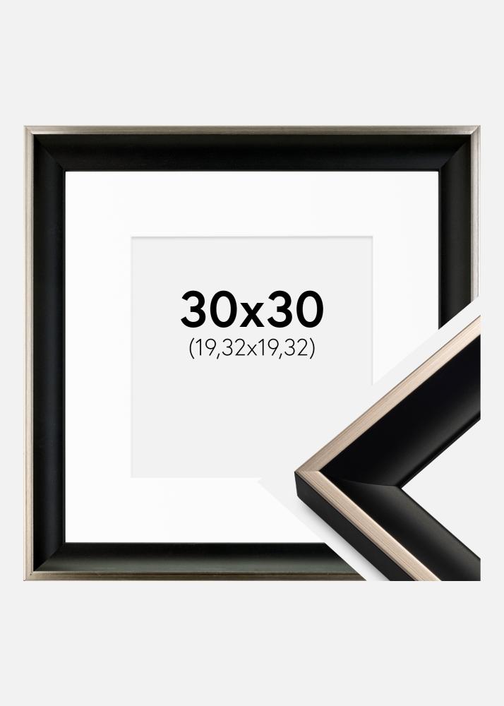 Moldura Öjaren Preto-Prateado 30x30 cm - Passe-partout Branco 8x8 inches