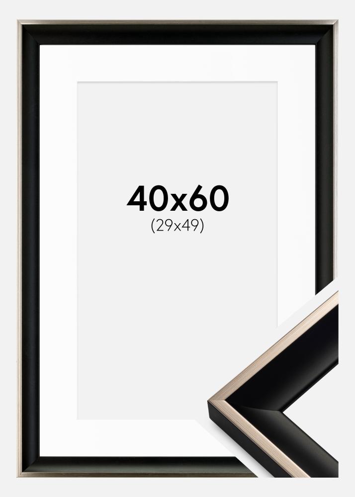 Moldura Öjaren Preto-Prateado 40x60 cm - Passe-partout Branco 30x50 cm