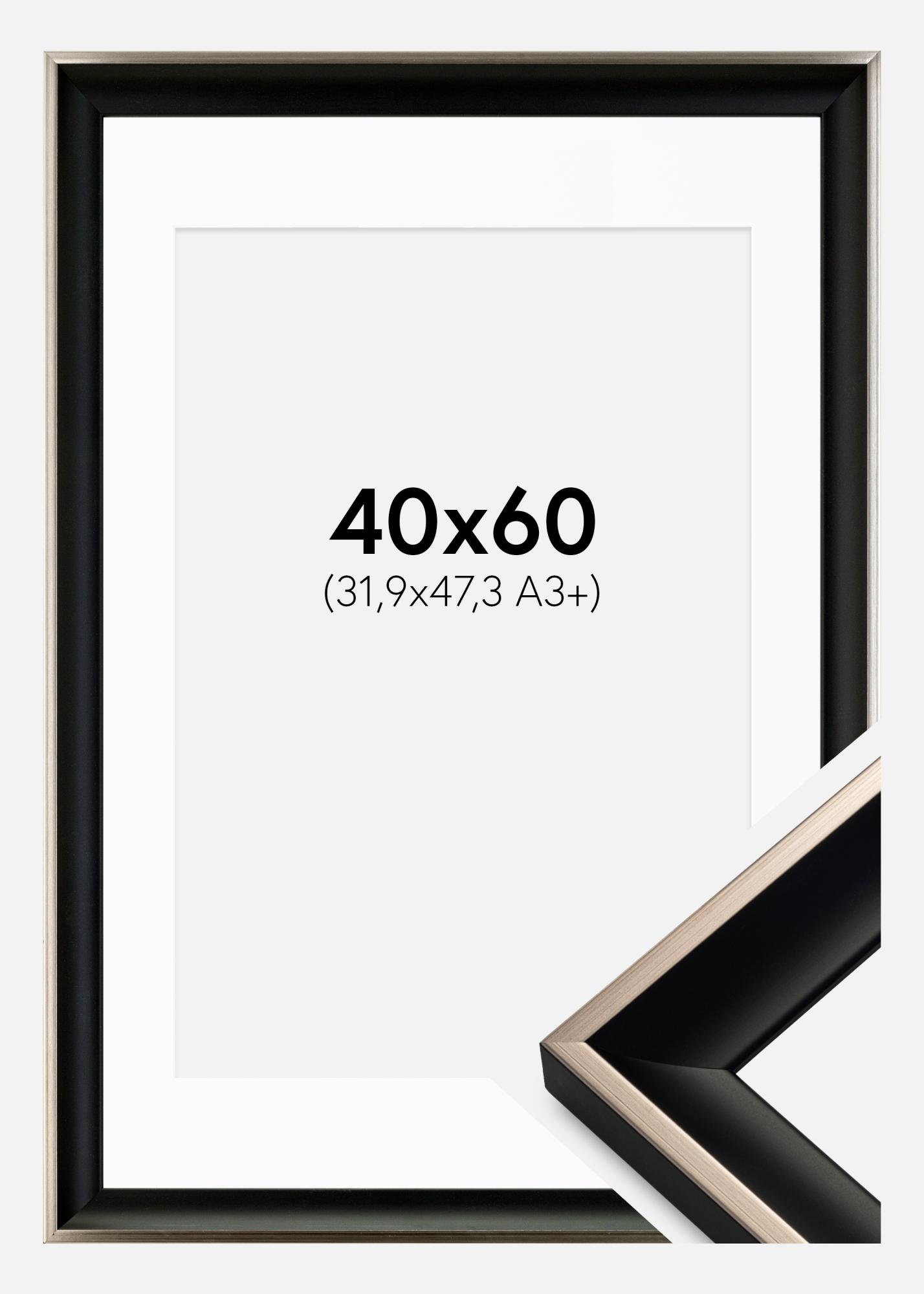 Moldura Öjaren Preto-Prateado 40x60 cm - Passe-partout Branco 32,9x48,3 cm (A3+)