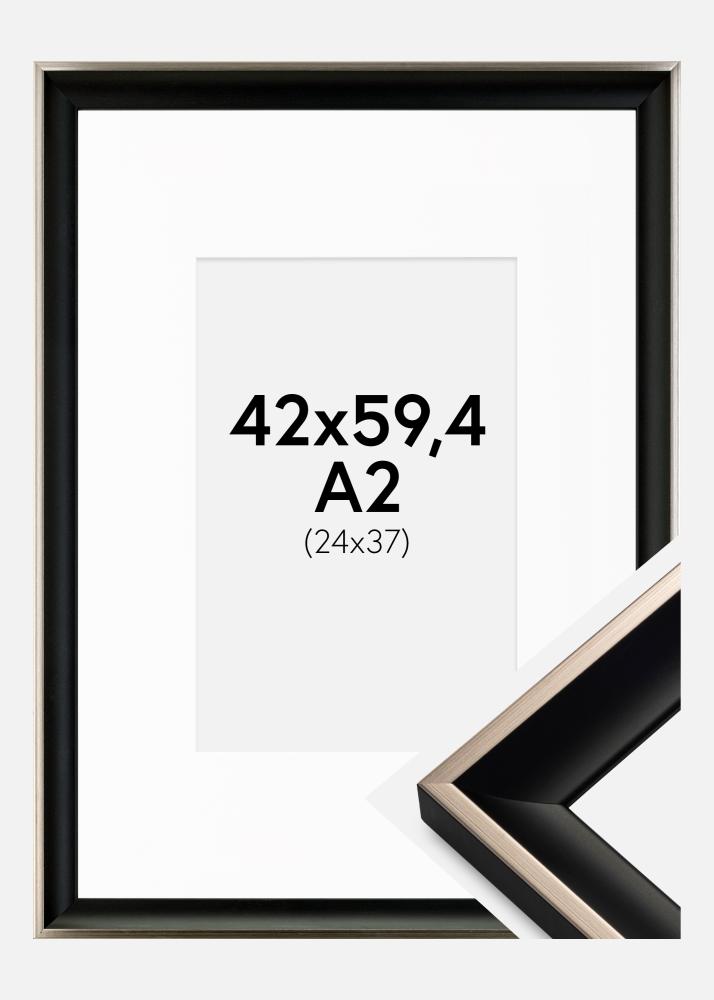 Moldura Öjaren Preto-Prateado 42x59,4 cm (A2) - Passe-partout Branco 25x38 cm