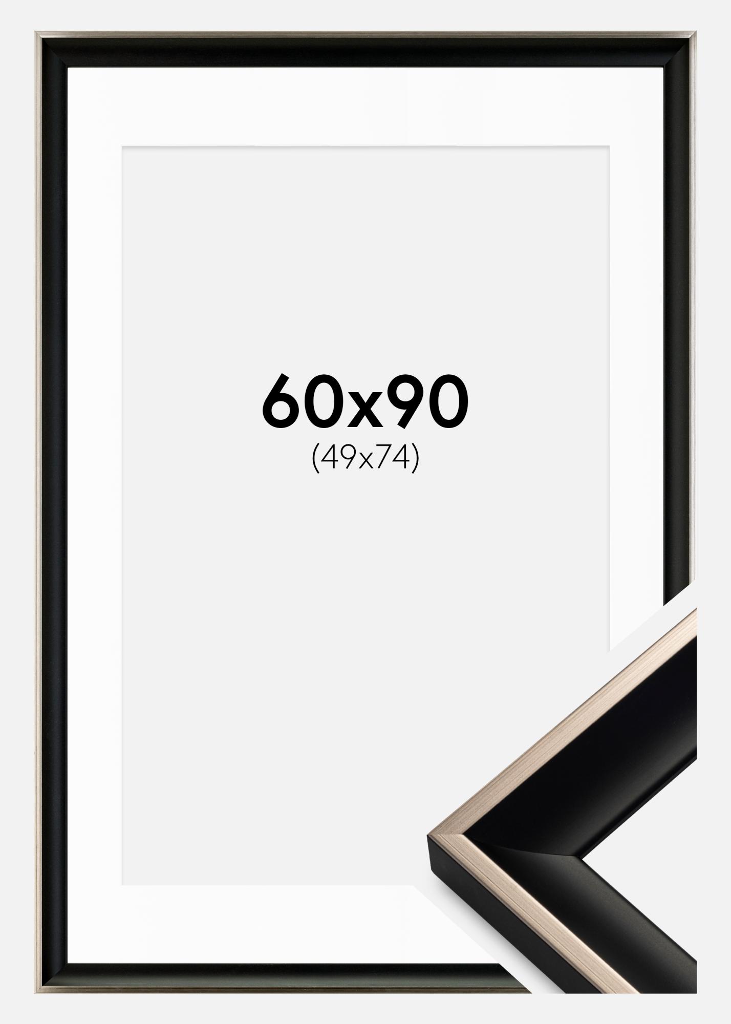 Moldura Öjaren Preto-Prateado 60x90 cm - Passe-partout Branco 50x75 cm
