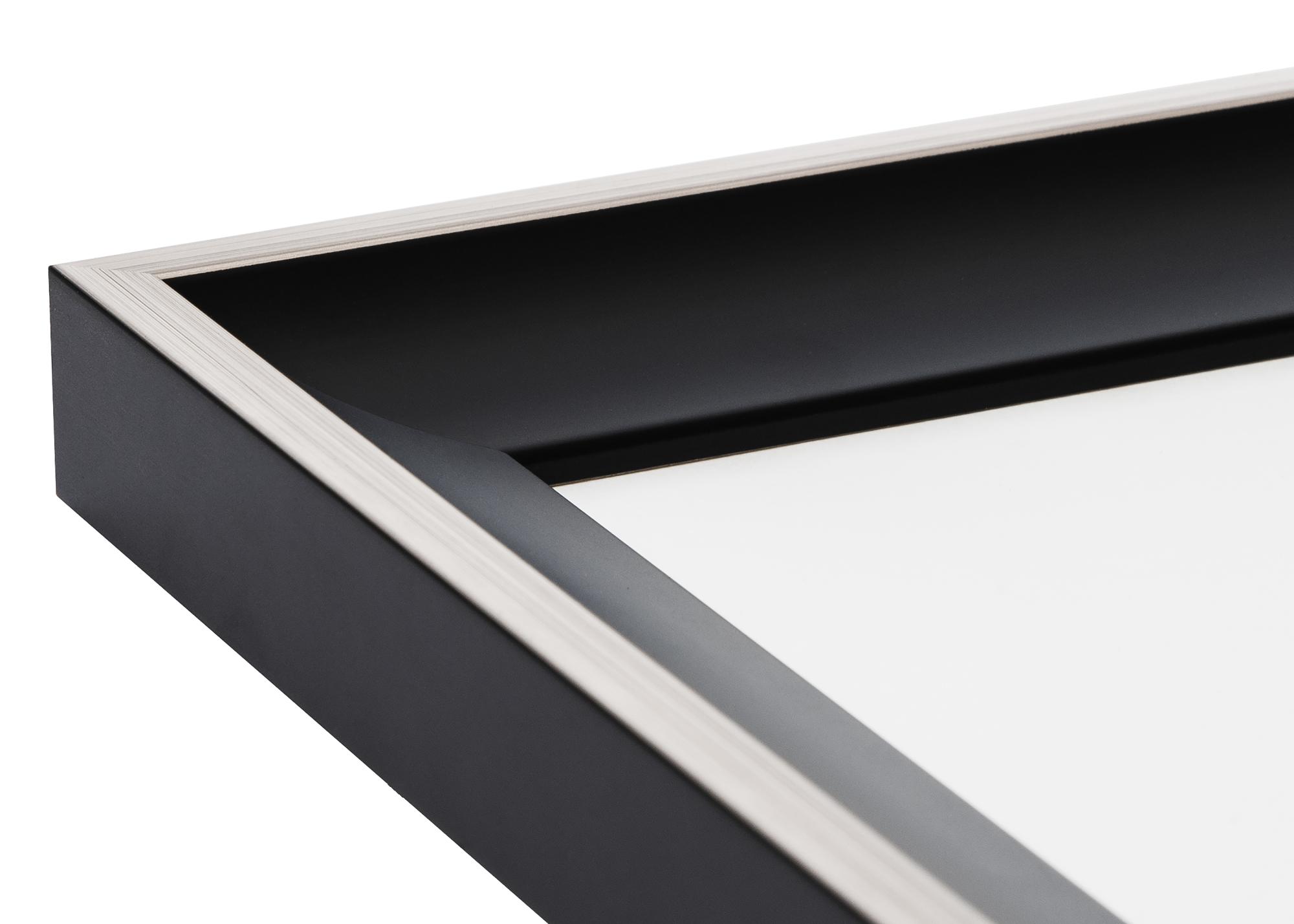 Moldura Öjaren Preto-Prateado 70x100 cm - Passe-partout Preto 59,4x84 cm (A1)