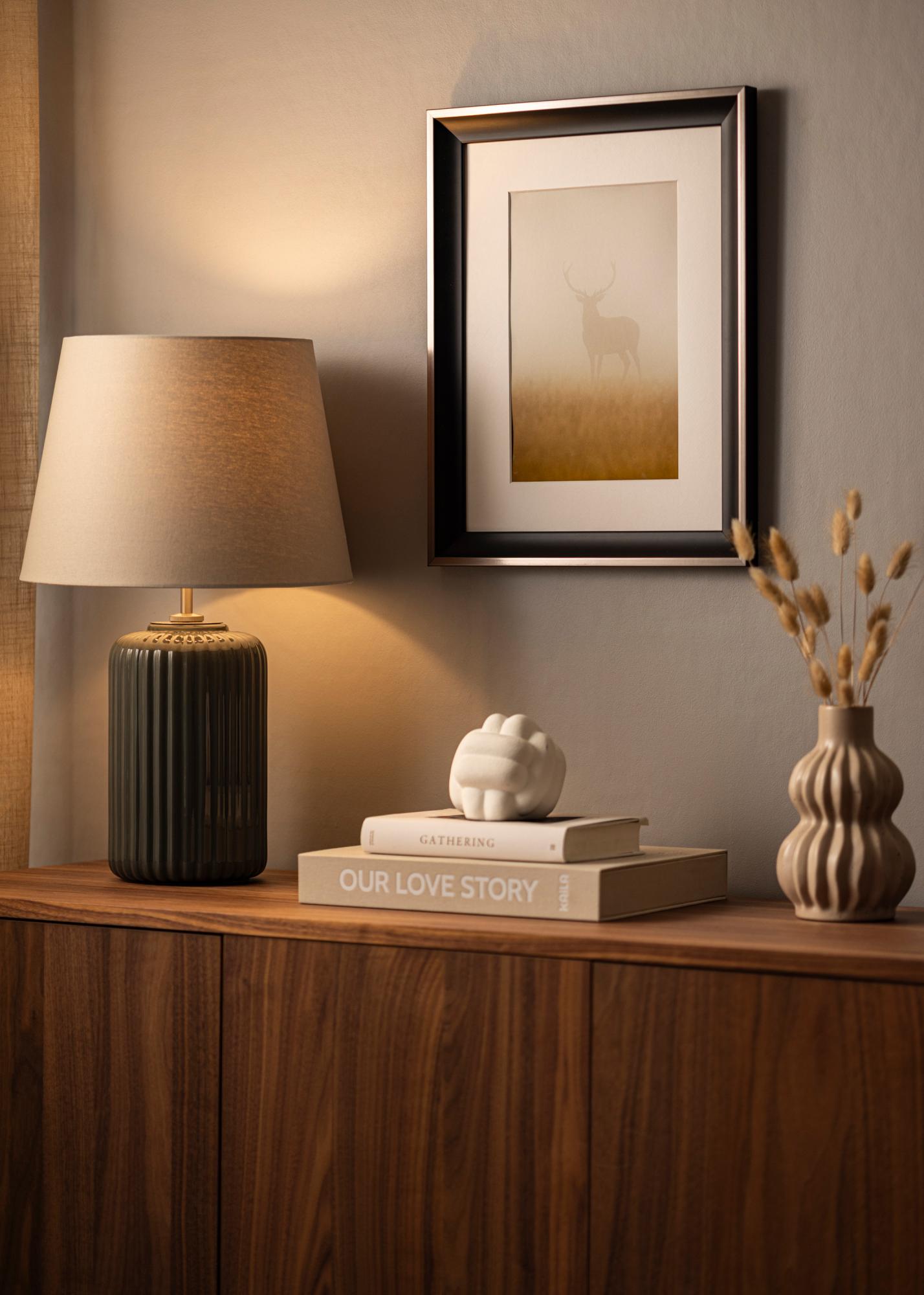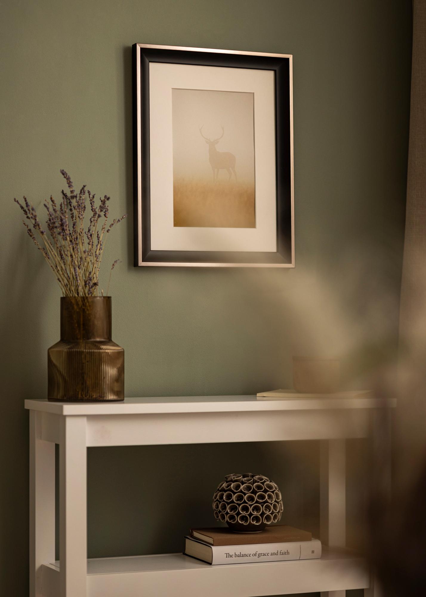 Para aqueles que procuram uma moldura larga (34 mm), a Öjaren 32C da Galleri 1 é uma excelente escolha. Com o seu perfil curvado em preto combinado com uma fina borda externa prateada, a Öjaren 32C causa uma impressão exclusiva que se destaca.
