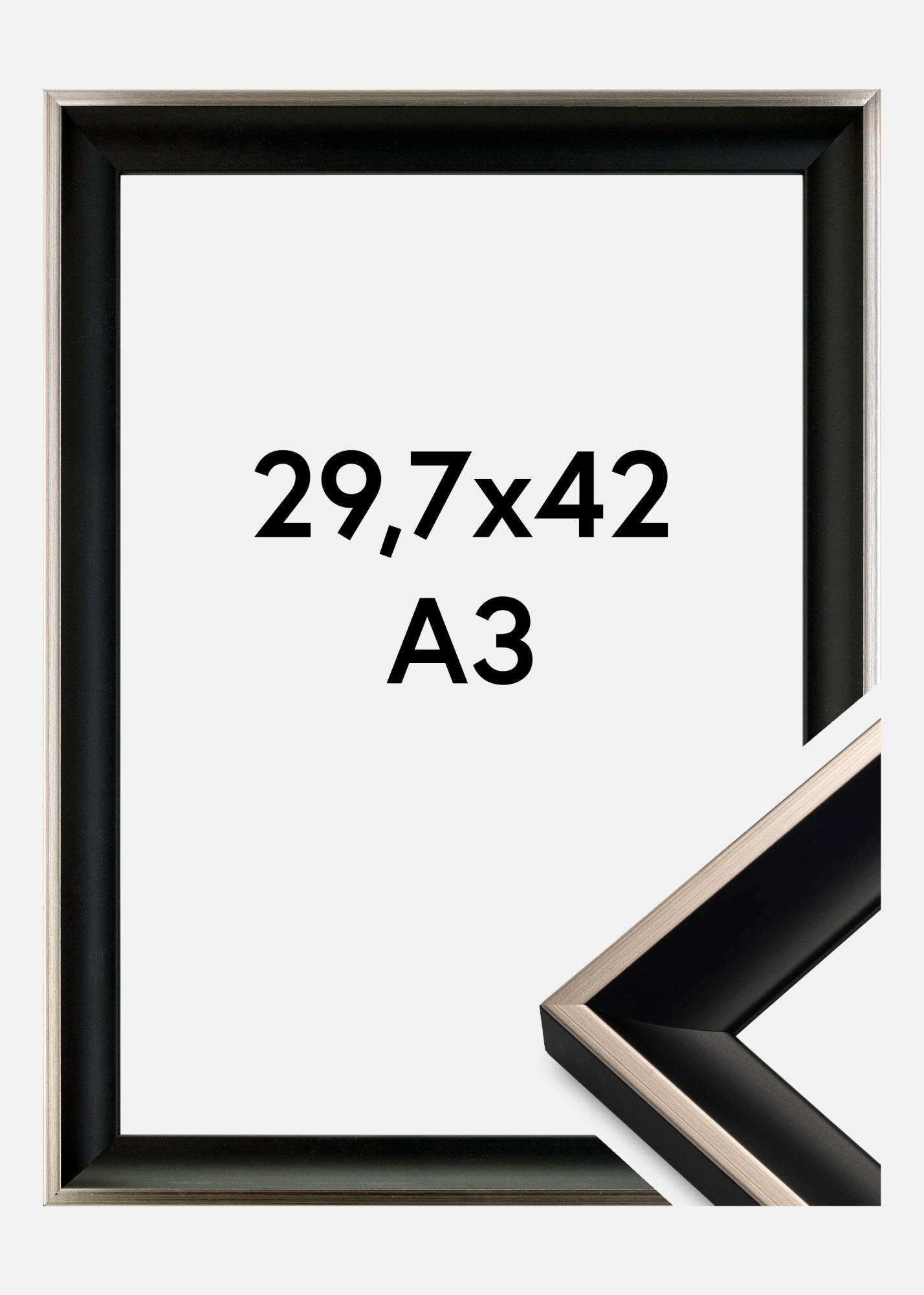 Moldura Öjaren Vidro acrílico Preto-Prateado 29,7x42 cm (A3)