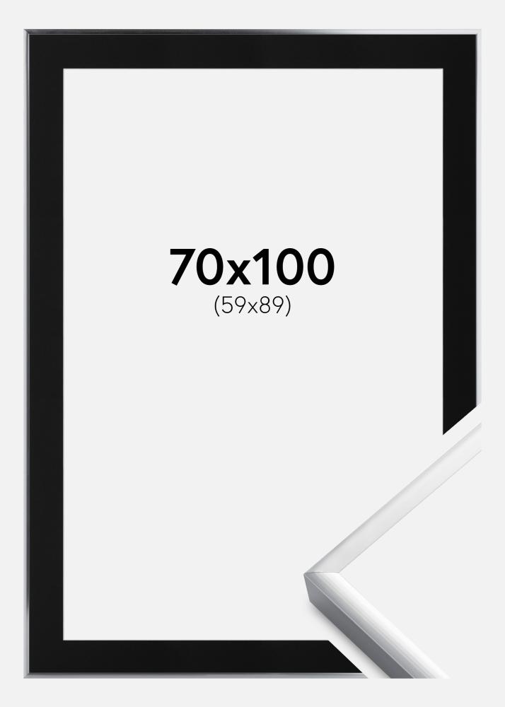 Moldura Póster Frame Aluminum Prateado 70x100 cm - Passe-partout Preto 60x90 cm