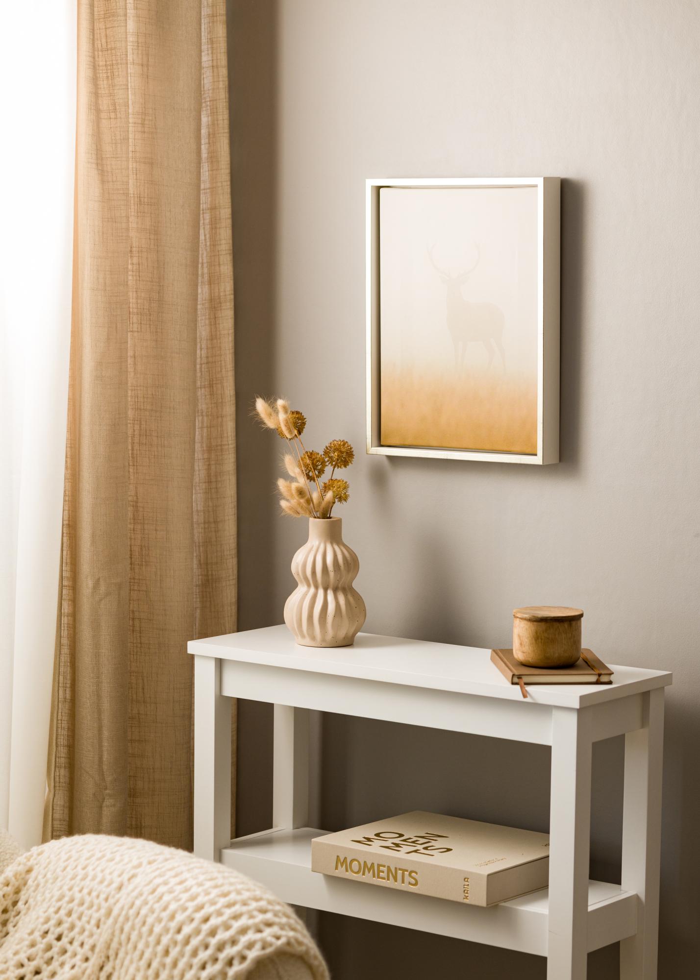 Esta moldura é especialmente projetada para acomodar telas de canvas com uma profundidade de 25-35 mm, tornando-a ideal para a maioria dos tamanhos padronizados de canvas. A profundidade da moldura de 45 mm proporciona uma sensação robusta e garante que sua tela permaneça firmemente no lugar. Feita de pinho, esta moldura oferece durabilidade e uma estética natural.
