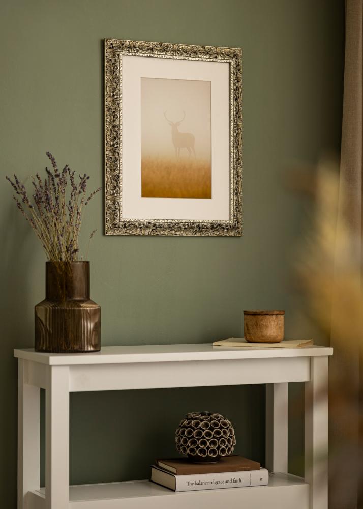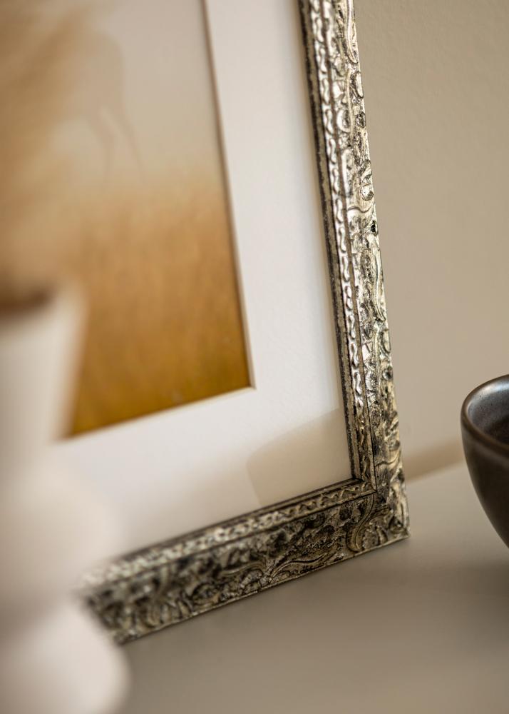 "Ralph Prateada" é uma moldura retro elegante fabricada na Itália com a mais alta qualidade. Com o seu perfil ricamente decorado, esta é uma escolha certa para fotos que lhe importam especialmente.